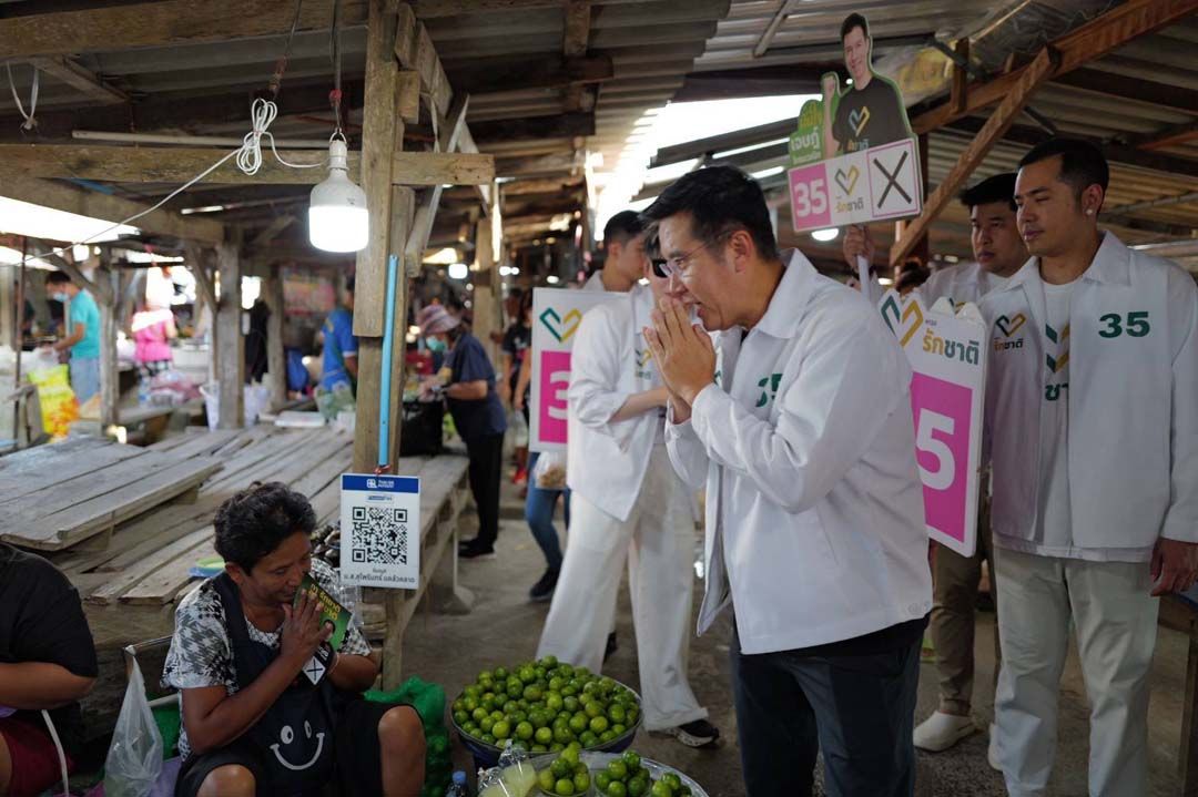 โดยบรรยากาศเป็นไปด้วยความอบอุ่น ทีมพรรครักชาติขึ้นรถแห่แนะนำตัว พร้อมเปิดเพลง "รักชาติ 35" ที่ดัดแปลงมาจากเพลง "เชฟบ๊ะ" สร้างความสนุกสนานคึกคักได้ตลอดเส้นทาง หลังจากนั้นทีมพรรครักชาติได้เดินทักทายพ่อค้าแม่ค้า และประชาชนทั่วไปที่มาจับจ่ายซื้อสินค้ายามเช้า ซึ่งประชาชนต่างเข้ามาให้กำลังใจ ขอถ่ายรูป และเต้นเพลง รักชาติ 35 พร้อมสะท้อนถึงการเลือกตั้งในพื้นที่ว่า "ตอนนี้ ทุกพรรคมีการซื้อเสียงกันหนักมาก ไม่ว่าพรรคเล็ก พรรคใหญ่ พรรคเก่า หรือพรรคใหม่ ซึ่งถือเป็นความดำมืดของการเมืองในพื้นที่ เทาทุกพรรค แต่ชื่นชมทีมพรรครักชาติ มีแต่คนรุ่นใหม่ ที่มีความตั้งใจจริงในอุดมการณ์ "ใช้น้ำดี ไล่น้ำเสีย" เข้าใจว่าต้องใช้เวลา แค่อยากเป็นกำลังใจให้" ซึ่งในระหว่างเดินตลาด แม่ค้า และคนส่วนใหญ่ต่างชื่นชมว่า พรรคนี้ทำไมมีแต่คนหล่อคนหน้าตาดี หล่อมาก และเชื่อแล้วว่ารุ่นใหม่ คนใหม่จริงๆ"