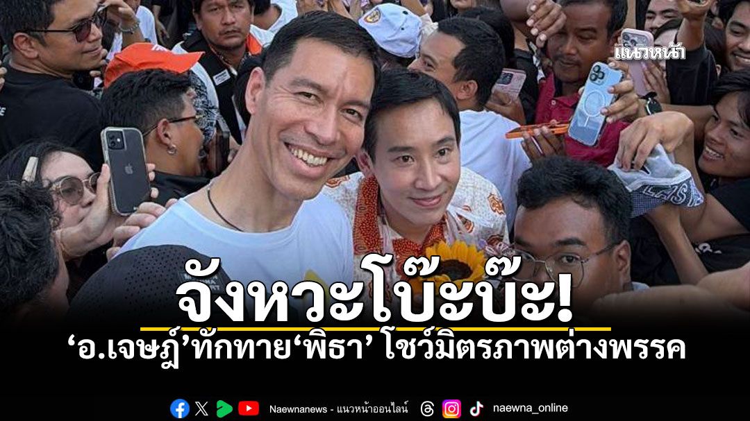 เซอร์ไพรส์กลางเมืองคอน "อ.เจษฎ์" ทักทาย "พิธา" กลางวงล้อมแฟนคลับ โชว์มิตรภาพต่างพรรค ชี้ ทุกฝ่ายควรมองบวก รักชาติร่วมกัน-อย่าทำบ้านเมืองแตกแยก พร้อมชม FC ส้มน่ารัก เชื่อ ทุกคนรักชาติ