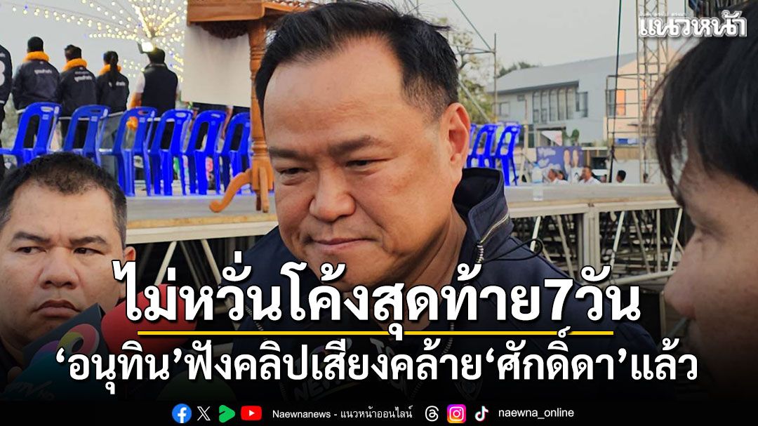 "อนุทิน" บอกคลิปเสียงคล้าย"ศักดิ์ดา" ปมน้ำเงินตั้งรัฐบาล ได้ยินแล้ว แต่ให้ เจ้าตัวตอบตัวเอง ไม่รู้ของจริงหรือปลอม ไม่หวั่นโค้งสุดท้าย 7 วัน กระแสพุ่งโจมตี ภท.ลั่น เชื่อใน ปชช.ขอเปรียบเป็นภูเขาทอง "อยู่ให้เป็น เย็นให้พอ รอให้ได้"