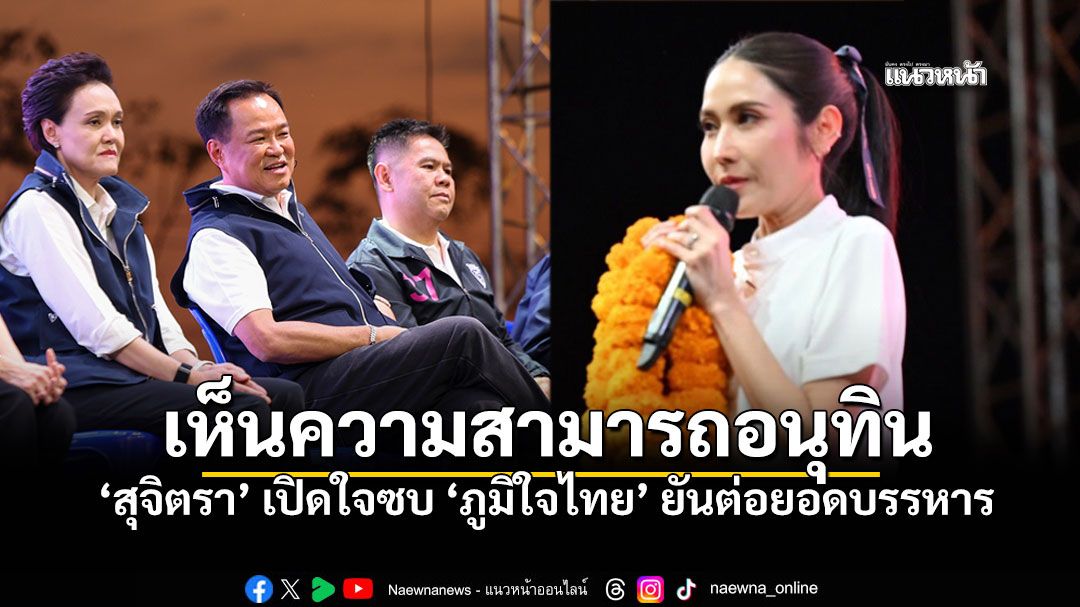 ‘สุจิตรา’ เปิดใจซบ ‘ภูมิใจไทย’ เล็งเห็นความสามารถ ‘อนุทิน’ ยันพร้อมต่อยอด-อุดมการณ์ ‘บรรหาร’ เปรียบ ‘วราวุธ’ เป็นหัวเรือ หันไปทางไหนขออนุญาตไปด้วย ลั่นถึงจะเปลี่ยนพรรค แต่หัวใจยังเป็นสีชมพู-รักชาวสุพรรณเหมือนเดิม