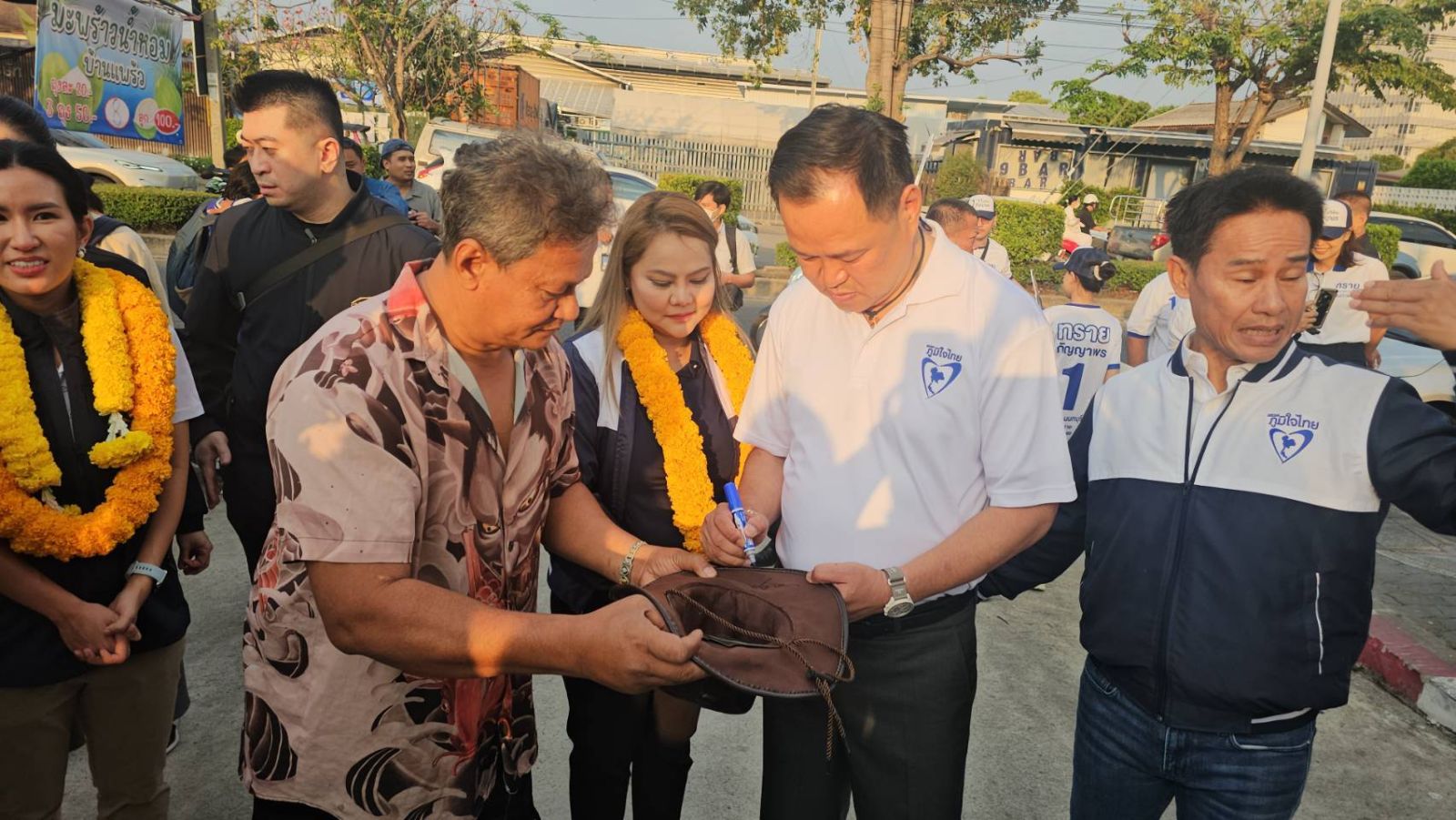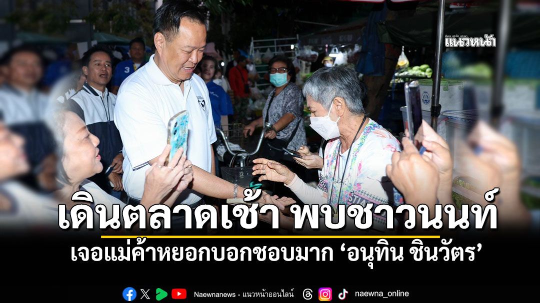 โดยนายอนุทิน เดินทักทายพ่อค้า แม่ค้าที่ขายของในตลาด และประชาชนที่มาจับจ่ายซื้อของในช่วงเช้า ซึ่งมีประชาชนดึงมือนายอนุทินไปดูลายมือ พร้อมบอกว่า “อนาคตจะได้เป็นนายกฯไหม“