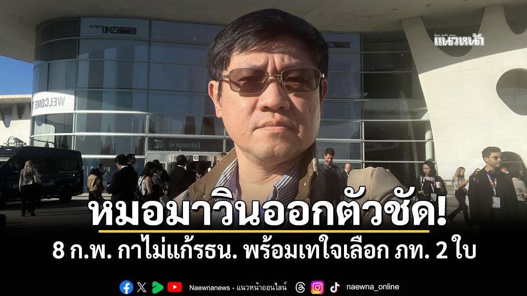 'หมอมาวิน'ลั่น 8 ก.พ. ไปโหวตไม่แก้รธน. พร้อมเทใจกา 'ภท.' ทั้ง 2 ใบ ชวนออกมาใช้สิทธิ์เกิน 70%