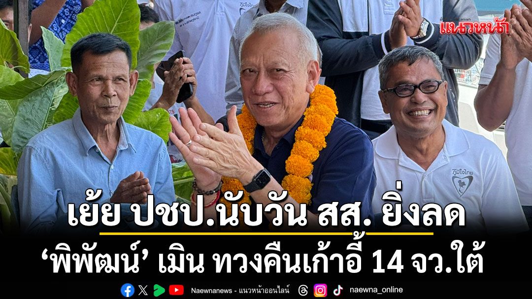 ‘พิพัฒน์’ ไร้กังวล ‘ปชป.’ ยกวลี ‘สมบัติพ่อเฒ่าฯ’ ทวงคืนเก้าอี้ 14 จังหวัดภาคใต้ ย้อนเกล็ดมีโอกาส 30 ปีทำไม่ได้ ซัดควรให้คนทำได้มาช่วยดู ไม่ใช่มาทวงคืนสมบัติ ตะเพิดย้อนดูตัวเองอดีตเคยเฟื่องฟูส่งเสาไฟฟ้าลงยังชนะ แต่นับวันสส.ยิ่งหด หวัง ชาวสุราษฎร์ให้สส.ยกจังหวัด ย้ำ เป้าเดิมภาคใต้ได้ไม่ต่ำกว่า 31 ที่นั่ง