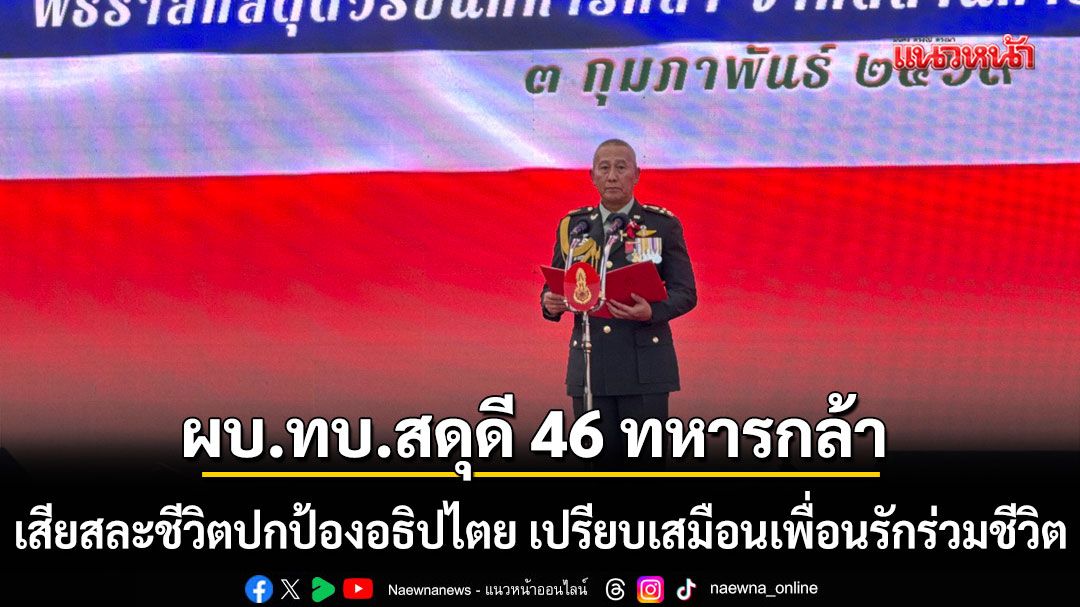 ผบ.ทบ.กล่าวคำสดุดีวีรชนทหารกล้า 46 นาย เสียสละชีวิตปกป้องอธิปไตย ชี้กำลังพลทุกนาย เปรียบเสมือนเพื่อนรักร่วมชีวิต ภายใต้ครอบครัวกองทัพบก