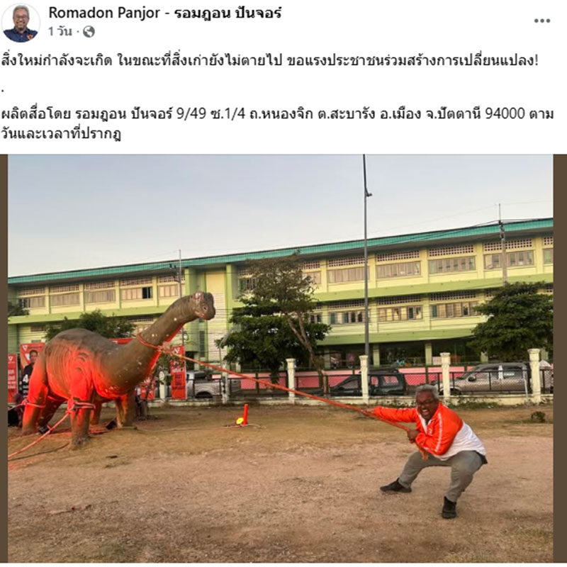 วันที่ 3 กุมภาพันธ์ 2569 ภายหลังที่ นาย รอมฎอน ปันจอร์ สมัคร ส.ส.บัญชีรายชื่อ พรรคประชาชน ได้โพสต์ภาพ ที่ตัวเองกำลังดึงเชือกที่ผูกกับ ไดโนเสาร์ พร้อมข้อความว่า "สิ่งใหม่กำลังจะเกิด ในขณะที่สิ่งเก่ายังไม่ตายไป ขอแรงประชาชนร่วมสร้างการเปลี่ยนแปลง!"