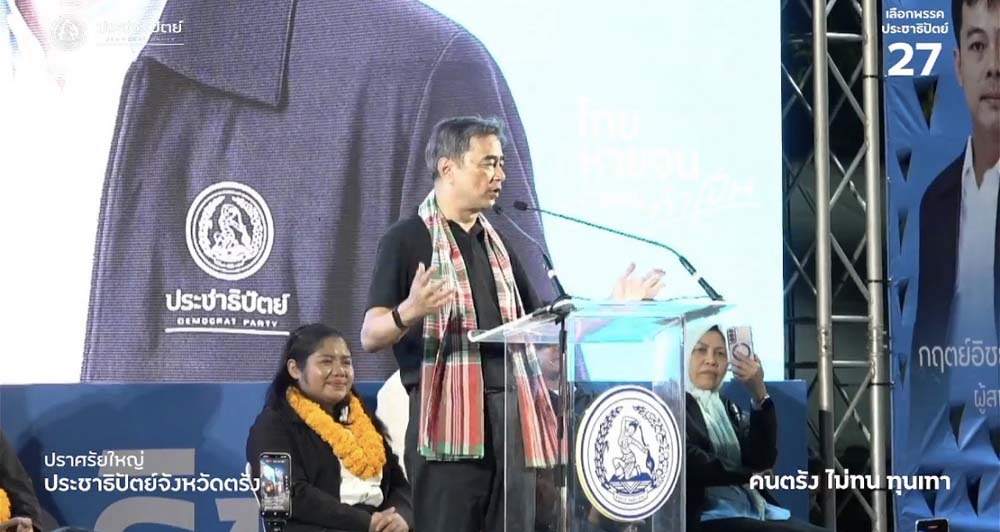 "อภิสิทธิ์" ปลุกคนตรังฟื้น "การเมืองสุจริต" ตัดวงจรทุนเทาซื้อ สส. - ฟาด! ภท.แซะ ปชป.สมบัติผู้เฒ่า จะรอดู ภท.เป็นผู้เฒ่าแล้วจะเหลืออะไรหรือไ่ม่ - ขย้ำซ้ำ! คุม "คมนาคม-ท่องเที่ยว" ตั้งนานเอาแต่เปิดอีเวนท์แต่ก็ไม่พัฒนาโครงสร้างพื้นฐาน โว ปชป.มืออาชีพ พร้อมวางปรับโครงสร้างปักษ์ใต้ให้แข็งแรง