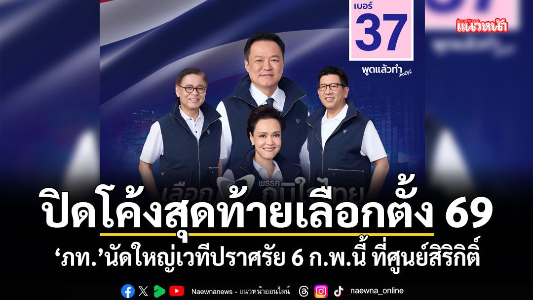 ปิดโค้งสุดท้ายเลือกตั้ง69 "ภท."นัดใหญ่เวทีปราศรัย 6 ก.พ.นี้ ที่ศูนย์สิริกิติ์ "อนุทิน"นำดรีมทีม ชู"เลือกพรรคภูมิใจไทย ได้มืออาชีพ พลิกโฉมเศรษฐกิจ ฝ่าวิกฤตโลก"