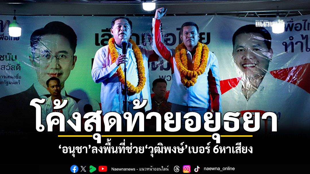โค้งสุดท้ายก่อนเลือกตั้ง “อนุชา” หาเสียงช่วย “วุฒิพงษ์” เขต 2 อยุธยาเบอร์ 6 ขอคะแนนให้วุฒิพงษ์ ไปยกมือให้ อาจารย์เชนเป็นนายกฯ ย้ำสานต่อนโยบาย 30 บาทแน่นอน
