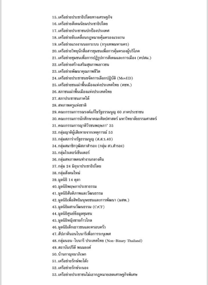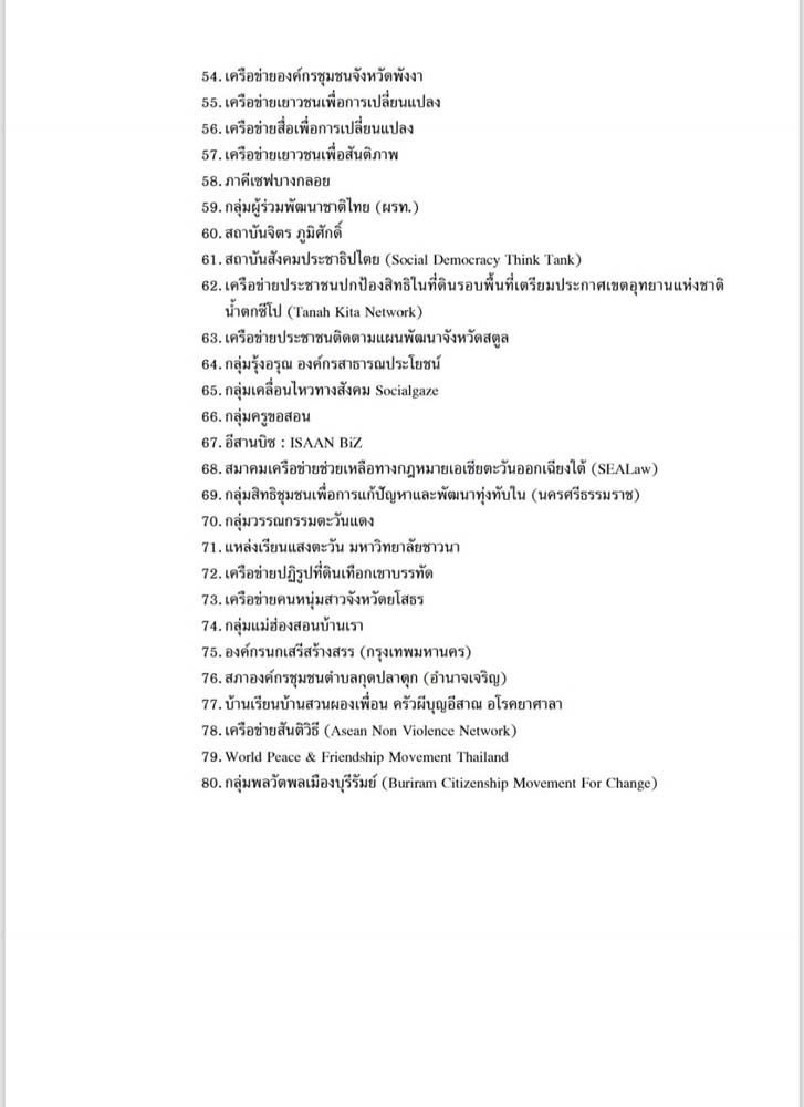 รายชื่อ 80 องค์กรประชาธิปไตย ดังนี้