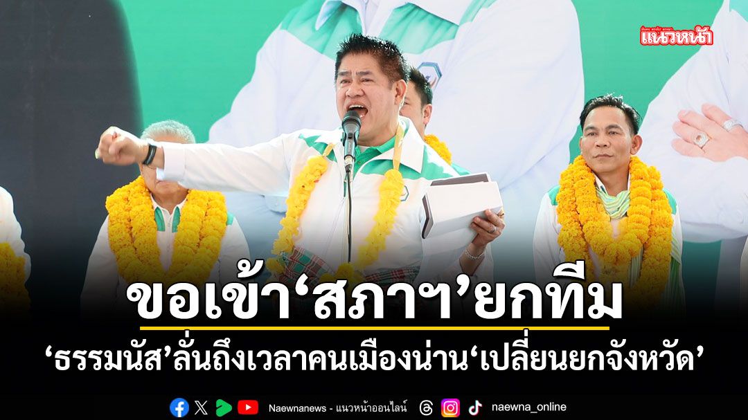 ระหว่างการปราศรัย เขาเรียกผู้สมัครทั้งสามเขตขึ้นเวที พร้อมขอเสียงสนับสนุนจากประชาชนในแต่ละพื้นที่ บรรยากาศเต็มไปด้วยเสียงโห่ร้องตอบรับอย่างคึกคัก ธรรมนัสแสดงความมั่นใจว่าการเลือกตั้งครั้งนี้ ชาวน่านพร้อม “เปลี่ยน” และพร้อมส่งผู้สมัครพรรคกล้าธรรมเข้าสภาแบบยกทีม