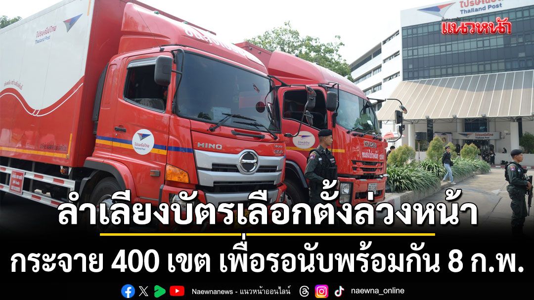 ปล่อยแล้ว!!ขบวนรถส่งบัตร ลต.ล่วงหน้า กกต. ร่วมกับไปรษณีย์ไทย กรมการกงสุล และสำนักงานตำรวจแห่งชาติปล่อยขบวนรถขนส่งบัตรเลือกตั้งล่วงหน้าที่ลงคะแนนแล้ว กระจาย 400 เขตทั่วประเทศ เพื่อรอนับคะแนนพร้อมกันในวันที่ 8 กุมภาพันธ์นี้