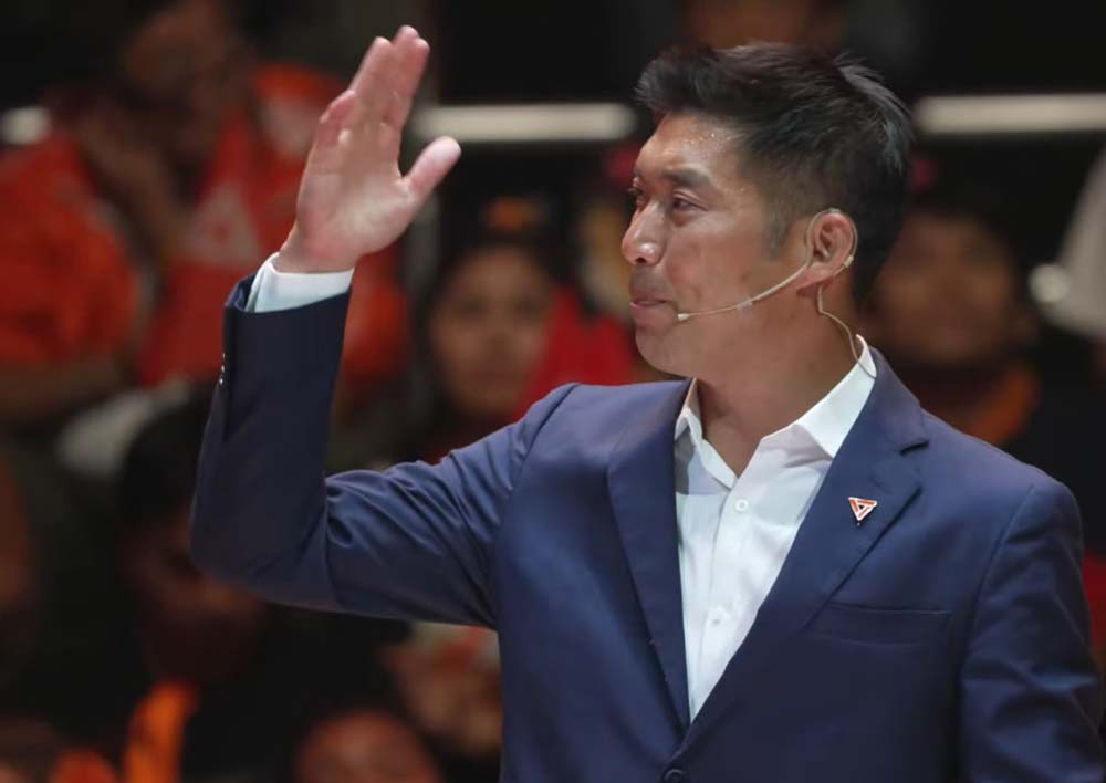 ประธานคณะก้าวหน้า กล่าวด้วยว่า อีก 2 วันจะถึงวันที่ปลายปากกาของทุกท่านกำหนดอนาคตของไทย ตนพาทุกท่านย้อนกลับไปดู สัญลักษณ์ของพวกเรา ตั้งแต่อนาคตใหม่ ก้าวไกล จนถึงประชาชน สัญลักษณ์ของพวกเรา ไม่ว่าถูกยุบกี่ครั้ง ตั้งพรรคใหม่อีกกี่ครั้ง ลุกขึ้นยืนอีกกี่ครั้ง สัญลักษณ์ก็ไม่เปลี่ยน คือสามเหลี่ยมหัวกลับ บอกว่าตรงข้ามกับ สามเหลี่ยมปกติ มันสามารถเป็นตัวแทนของโครงสร้างสังคม ว่าคนรวย คนมีอำนาจ อยู่ข้างบน ประชาชนที่เป็นคนส่วนใหญ่ของประเทศอยู่ข้างล่าง สามเหลี่ยมหัวกลับของพวกเรานี้ ผู้มีอำนาจต้องอยู่ข้างล่าง ประชาชนต้องเป็นใหญ่ เจ้านายคือประชาชน