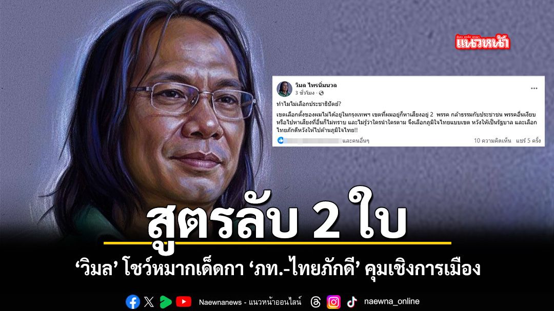 เมื่อวันที่ 7 กุมภาพันธ์ 2569 นาย วิมล ไทรนิ่มนวล นักเขียนรางวัลซีไรต์ชื่อดัง ได้โพสต์ข้อความผ่านเฟซบุ๊กส่วนตัว วิเคราะห์ถึงการตัดสินใจเลือกพรรคการเมืองในการเลือกตั้งครั้งนี้ โดยระบุถึงเหตุผลที่ไม่ได้เลือกพรรคประชาธิปัตย์ในเขตพื้นที่ของตน และเผยกลยุทธ์การเลือกแบบคานอำนาจ ข้อความฉบับเต็มจากโพสต์ ว่า "ทำไมไม่เลือกประชาธิปัตย์? เขตเลือกตั้งของผมไม่ได้อยู่ในกรุงเทพฯ เขตที่ผมอยู่ก็หาเสียงอยู่ 2 พรรค กล้าธรรมกับประชาชน พรรคอื่นเงียบ หรือไปหาเสียงที่อื่นก็ไม่ทราบ และไม่รู้ว่าใครนำใครตาม จึงเลือกภูมิใจไทยแบบเขต หวังใหัเป็นรัฐบาล และเลือกไทยภักดีหวังให้ไปค้านภูมิใจไทย!!"