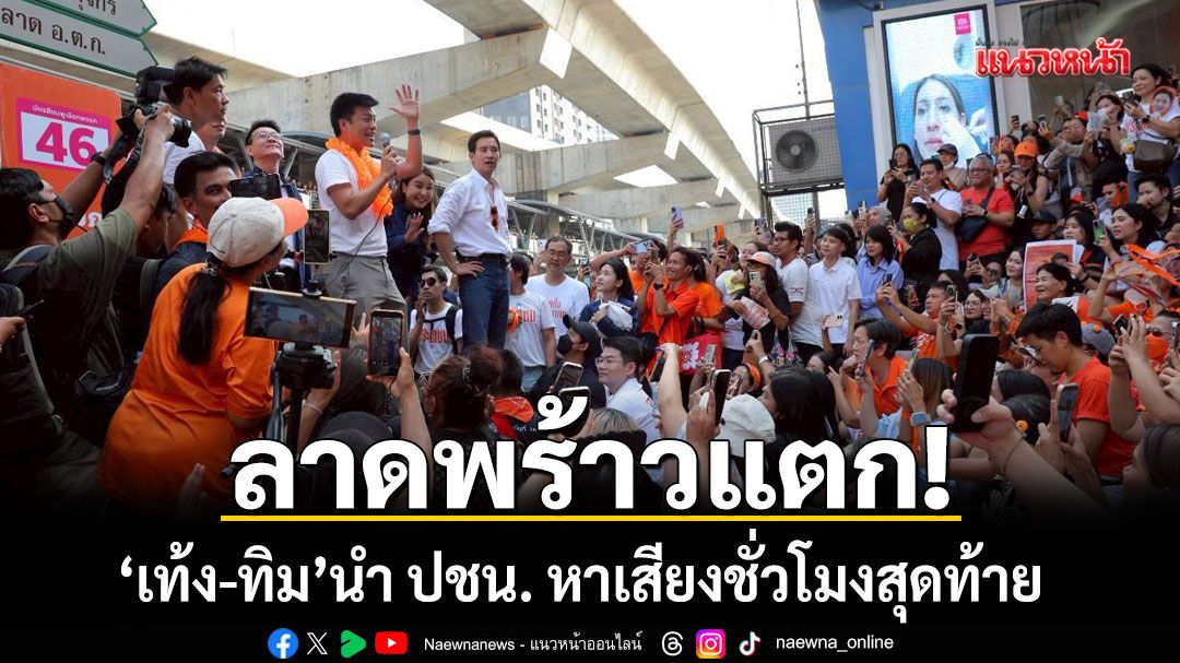 ‘เท้ง ณัฐพงษ์ - วีระยุทธ - พิธา’ ผนึกกำลังโค้งสุดท้าย ขึ้นรถแห่หาเสียงทั่วกรุงเทพฯ อ้อนพ่อแม่พี่น้องขอให้กาพรรคส้มทั้ง 2 ใบ ตั้งรัฐบาลประชาชนด้วยกัน เลือกเพื่อลูกหลาน อย่าติดหล่มปัจจุบันที่ไร้อนาคต ช่วยเป็นสักขีพยานนับคะแนนที่หน่วยเลือกตั้ง