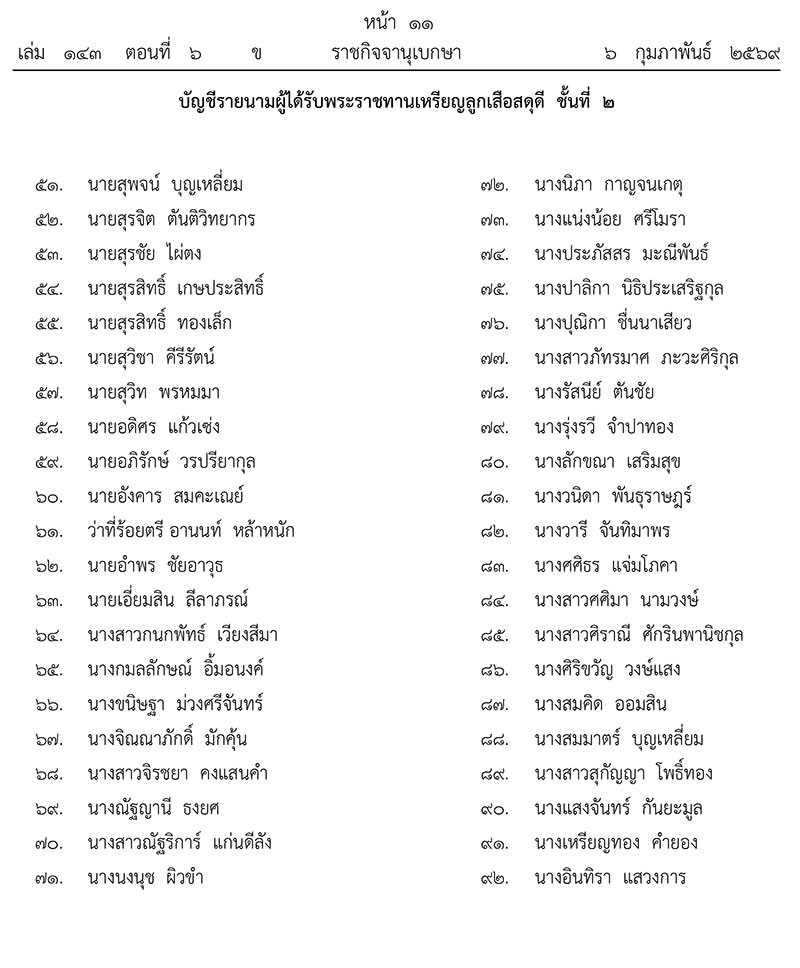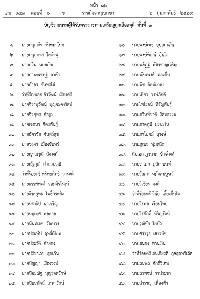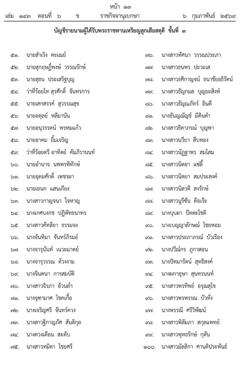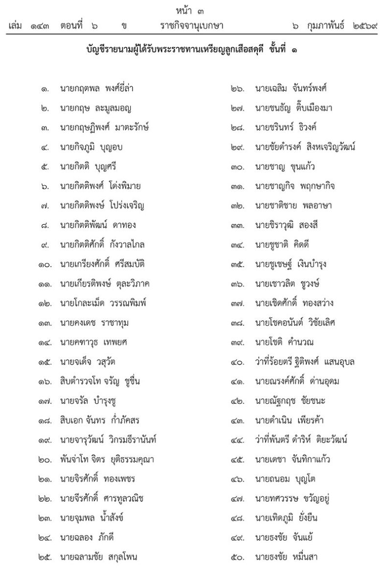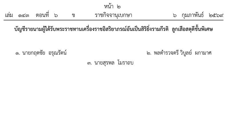 ประกาศ ณ วันที่ 3 กุมภาพันธ์ พุทธศักราช 2569 เป็นปีที่ 11 ในรัชกาลปัจจุบัน