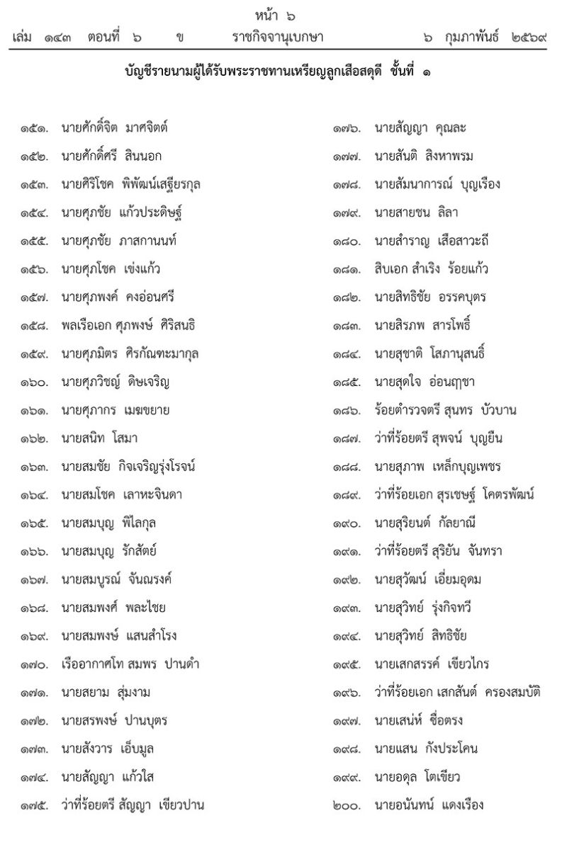 ทั้งนี้ ตั้งแต่วันที่ 2 กุมภาพันธ์ พุทธศักราช 2569