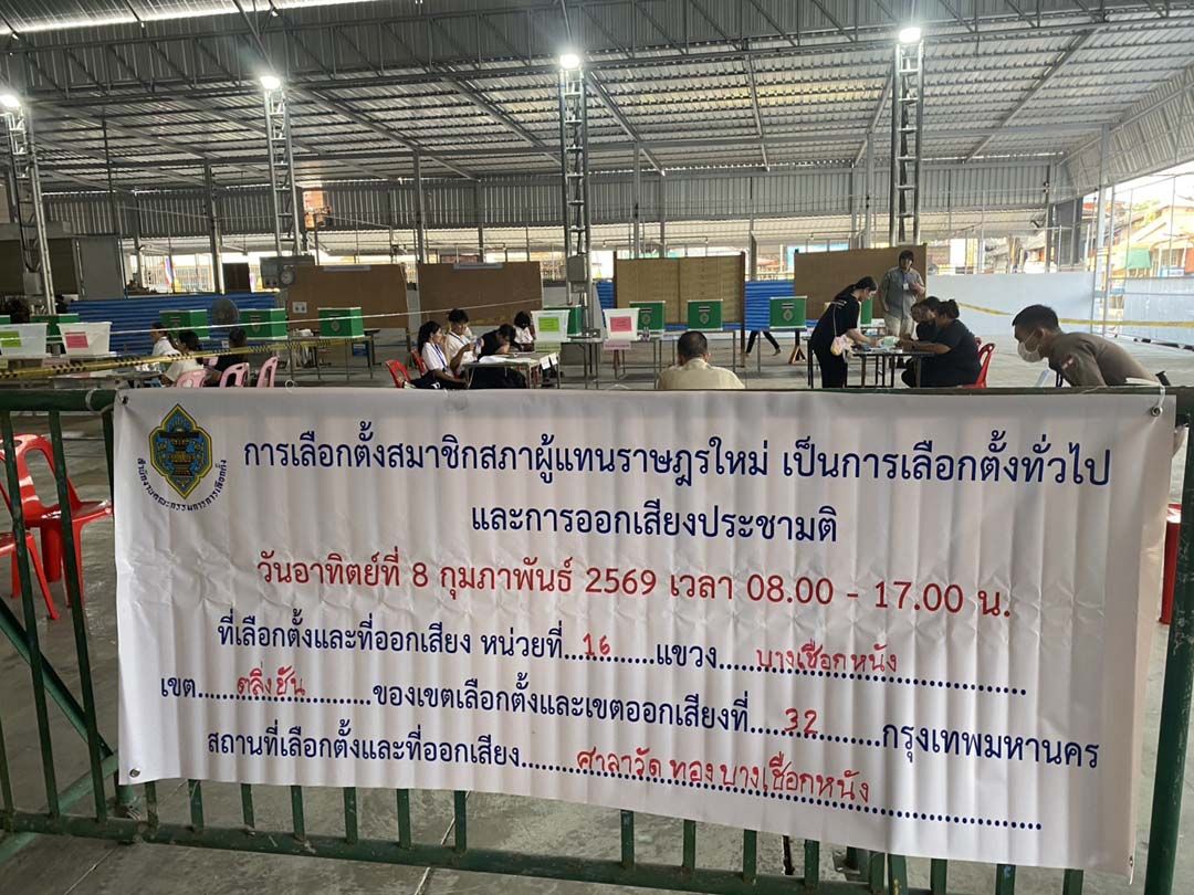 8 กุมภาพันธ์ 2569 ผู้สื่อข่าวรายงานบรรยากาศการเลือกตั้งสมาชิกสภาผู้แทนราษฎร และการออกเสียงประชามติในวันเดียวกัน ที่หน่วยเลือกตั้ง วัดทองบางเชือกหนัง เขตตลิ่งชัน กรุงเทพฯฯ ซึ่งในเวลา 09.30 นายณัฐพงษ์ เรืองปัญญาวุฒิ หัวหน้าพรรคประชาชน (ปชน.) และแคนดิเดตนายกรัฐมนตรี จะเดินทางมาลงคะแนนเสียงเลือกตั้ง