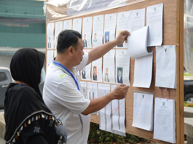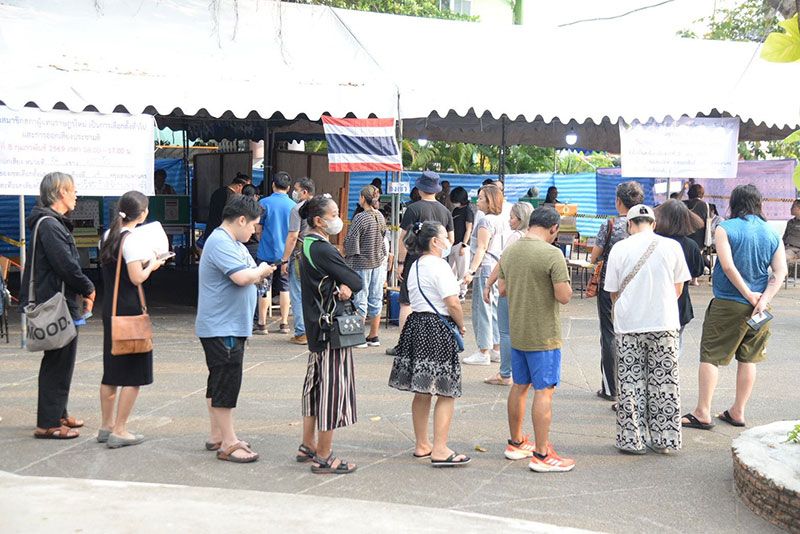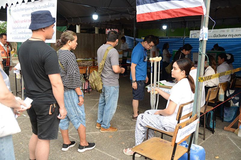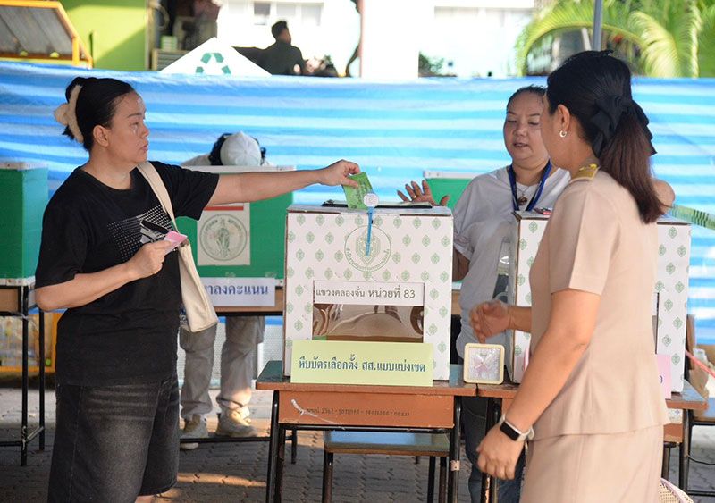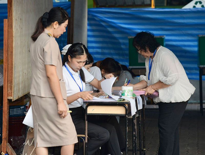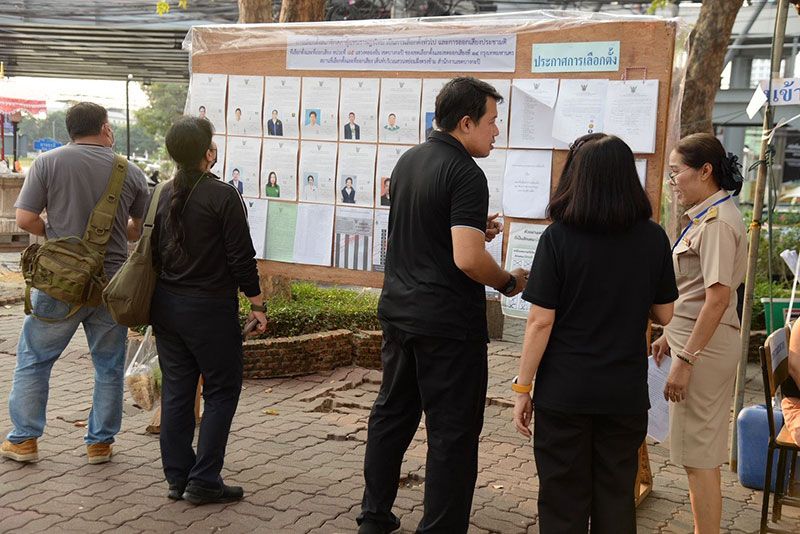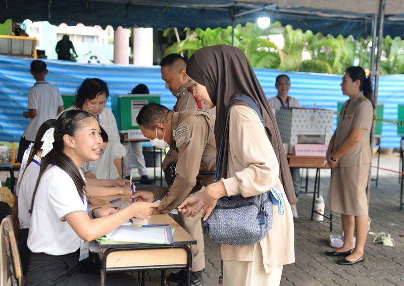 เจ้าหน้าที่ประจำหน่วยได้อำนวยความสะดวกในการตรวจสอบลำดับรายชื่ออย่างใกล้ชิด เพื่อรองรับบัตรเลือกตั้ง 3 ใบ (ส.ส. แบบแบ่งเขต, ส.ส. แบบบัญชีรายชื่อ และบัตรออกเสียงประชามติ) ท่ามกลางบรรยากาศที่เป็นระเบียบเรียบร้อย