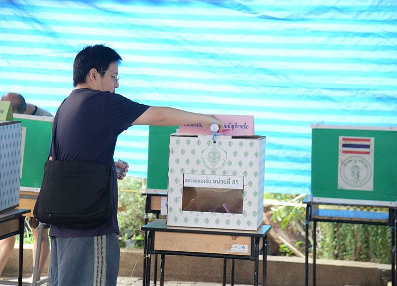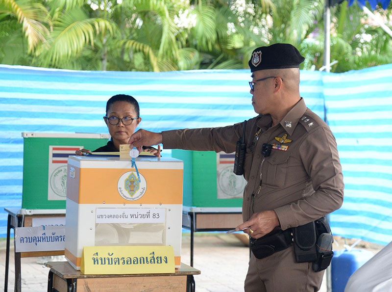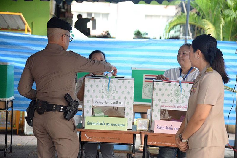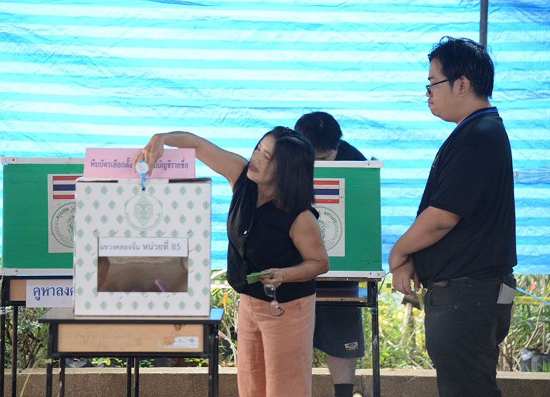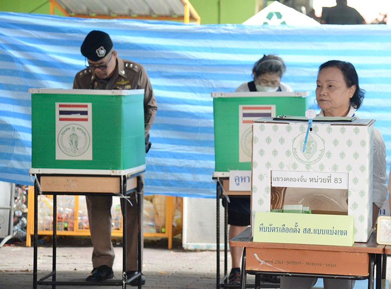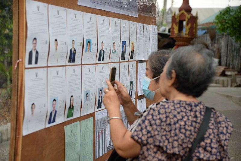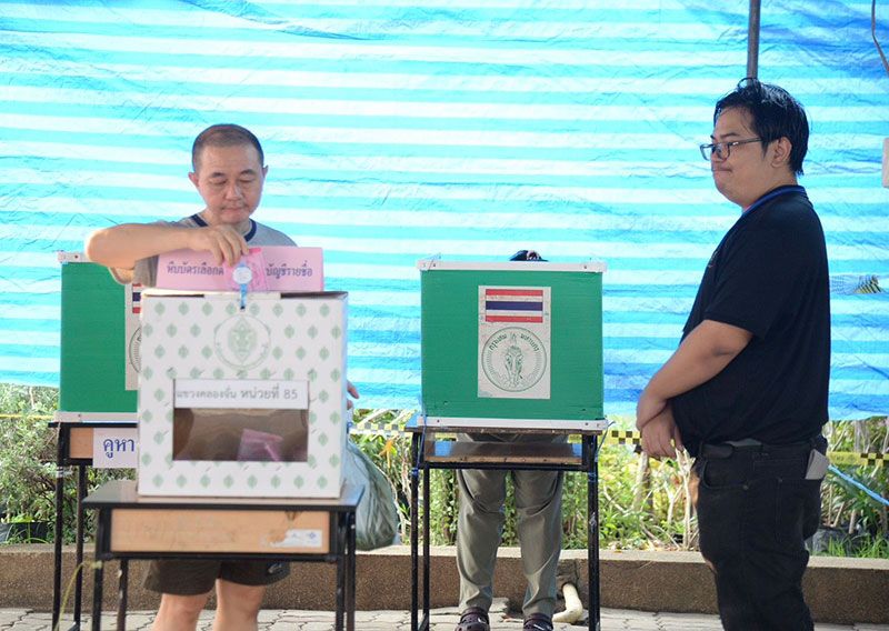 เจ้าหน้าที่ประจำหน่วยได้อำนวยความสะดวกในการตรวจสอบลำดับรายชื่ออย่างใกล้ชิด เพื่อรองรับบัตรเลือกตั้ง 3 ใบ (ส.ส. แบบแบ่งเขต, ส.ส. แบบบัญชีรายชื่อ และบัตรออกเสียงประชามติ) ท่ามกลางบรรยากาศที่เป็นระเบียบเรียบร้อย