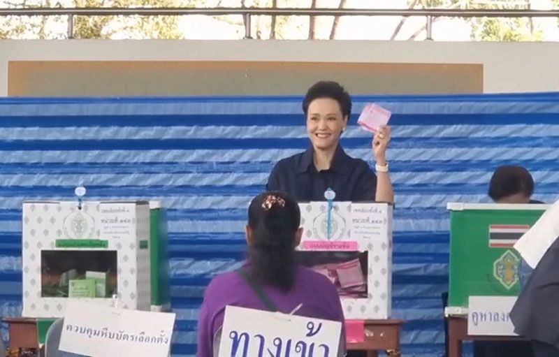 โดยนางศุภจีได้ตรวจสอบรายชื่อผู้สิทธิ์กับกรรมการเลือกตั้งประจำหน่วย ก่อนจะรับบัตร 3 ใบ เข้าไปใช้สิทธิ์เลือกตั้งครบทั้ง 3 ใบ