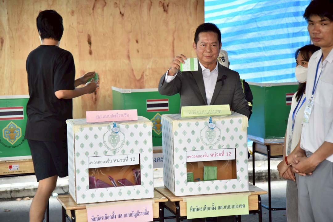 ปธ.กกต.ตรวจหน่วยเลือกตั้ง-ออกเสียงประชามติ ลานจอดรถ CDC ก่อนเข้าคูหาใช้สิทธิ์ พร้อมให้กำลังใจ กปน.ปฏิบัติหน้าที่รอบคอบ ตั้งเป้าประชาชนออกมาใช้สิทธิ์มากกว่าร้อยละ 75