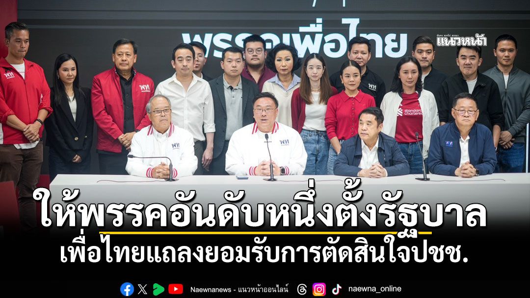เมื่อเวลา 21.17 น. วันที่ 8 ก.พ.2569 ที่พรรคเพื่อไทย นายจุลพันธ์ อมรวิวัฒน์ หัวหน้าพรรคเพื่อไทย และแคนดิเดตนายกรัฐมนตรี พร้อมด้วยนายสุริยะ จึงรุ่งเรืองกิจ แคนดิเดตนายกรัฐมนตรี นายชูศักดิ์ ศิรินิล รองหัวหน้าพรรค นายประเสริฐ จันทรรวงทอง เลขาธิการพรรค ร่วมแถลงข่าวหลังนับคะแนนอย่างเป็นทางการ นายจุลพันธ์กล่าวว่า แม้การเลือกตั้งยังนับคะแนนอยู่เราได้เห็นภาพอย่างเป็นทางการแล้ว พรรคเพื่อไทยเรากราบขอบคุณประชาชนทุกคนที่ได้ออกมาใช้สิทธิ์ในการเลือกตั้งเดินหน้าระบอบประชาธิปไตย และขอบคุณทุกคะแนนที่ให้กับพรรคเพื่อไทย เป็นกำลังใจที่ทำให้เราเดินหน้าในการทำงานเพื่อประชาชนต่อไป ส่วนผลการเลือกตั้งในขณะนี้อาจจะยังไม่จบสิ้นยังอยู่ในขั้นตอนการรวบรวมคะแนนต่างๆ แต่อย่างไรก็ตามพรรคเพื่อไทยยืนยันเรายึดมั่นในระบอบประชาธิปไตยและรัฐสภาคงเป็นภาระหน้าที่ของพรรคที่ได้รับคะแนนเสียงมากที่สุดในการเดินหน้าตั้งรัฐบาลต่อไป ส่วนพรรคเพื่อไทยไม่ว่าจะอยู่ในบทบาทใดเราจะทำงานให้กับประชาชนอย่างเต็มที่เต็มกำลังความสามารถที่เรามีอยู่