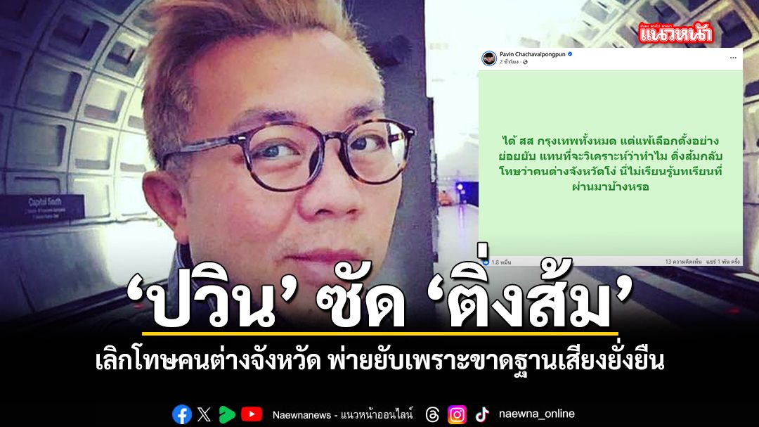 เมื่อวันที่ 9 กุมภาพันธ์ 2569 นาย ปวิน ชัชวาลพงศ์พันธ์ อาจารย์ประจำสถาบันเอเชียตะวันออกเฉียงใต้ศึกษา มหาวิทยาลัยเกียวโต ได้โพสต์ข้อความผ่านเฟซบุ๊ก Pavin Chachavalpongpun แสดงทัศนะต่อผลการเลือกตั้งที่พรรคประชาชนกวาดที่นั่งในกรุงเทพฯ ได้ทั้งหมด แต่กลับพ่ายแพ้ในภาพรวมระดับประเทศ โดยระบุว่า "ได้ สส กรุงเทพทั้งหมด แต่แพ้เลือกตั้งอย่างย่อยยับ แทนที่จะวิเคราะห์ว่าทำไม ติ่งส้มกลับโทษว่าคนต่างจังหวัดโง่ นี่ไม่เรียนรู้บทเรียนที่ผ่านมาบ้างหรอ"