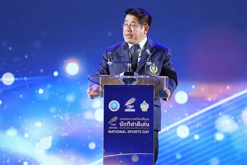 ขณะที่ ร.อ.ธรรมนัส กล่าวตอนหนึ่งว่า งานประกาศเกียรติคุณนักกีฬาดีเด่น เนื่องในวันกีฬาแห่งชาติ ประจำปี 2568 ในวันนี้ ถือเป็นวันสำคัญยิ่งทางการกีฬาของไทย เนื่องด้วยพระบาทสมเด็จพระบรมชนกาธิเบศร มหาภูมิพลอดุลยเดชมหาราช บรมนาถบพิตร ทรงเป็นนักกีฬาทีมชาติไทย และทรงชนะเลิศการแข่งขันกีฬาเรือใบ ประเภท โอ.เค. ในกีฬาแหลมทอง ครั้งที่ 4 ณ กรุงเทพมหานคร ปีพุทธศักราช 2510 ยังความปลื้มปิติแก่ประชาชนชาวไทยทั้งชาติ ผลงานของนักกีฬาในรอบปีที่ผ่านมา ถือว่าได้สร้างชื่อเสียงและความสุขให้กับประชาชนในประเทศเป็นอย่างมาก โดยเฉพาะในปีพุทธศักราช 2568 ประเทศไทยของเราได้รับเกียรติให้เป็นเจ้าภาพจัดการแข่งขันกีฬาซีเกมส์ ครั้งที่ 33 และกีฬาอาเซียนพาราเกมส์ ครั้งที่ 13 ซึ่งนักกีฬาทีมชาติไทยสามารถทำผลงานได้อย่างน่าประทับใจ