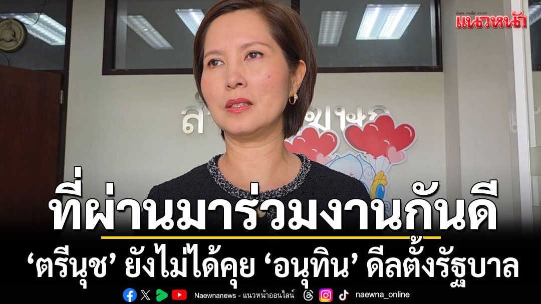 “ตรีนุช” ยังไม่ได้คุย “อนุทิน” ดีลตั้งรัฐบาล รอ กกต.รับรองผล บอก ที่ผ่านมาทำงานร่วมกันไม่มีปัญหา แย้ม พปชร.ฟังเสียงประชาชน หลังเทคะแนน “ให้ภูมิใจไทย” ท่วมท้น