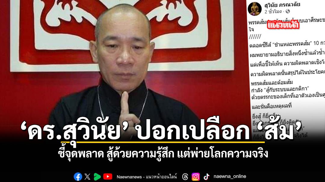 ล่าสุดวันนี้ 11 กุมภาพันธ์ 2569 ดร.สุวินัย ภรณวลัย นักเขียนและอดีตอาจารย์ประจำคณะเศรษฐศาสตร์ มหาวิทยาลัยธรรมศาสตร์ ได้ออกมาโพสต์ข้อความผ่านเฟซบุ๊กส่วนตัว สรุปซีรีส์บทความ ชำแหละพรรคส้ม โดยระบุเนื้อหาที่น่าสนใจไว้ดังนี้ "พรรคส้มและด้อมส้มสู้แบบเอาศีรษะชนกำแพง : เมื่อพวกเขากำลังสู้กับระบบและกติกา ด้วยตรรกะของเด็กเอาแต่ใจ
