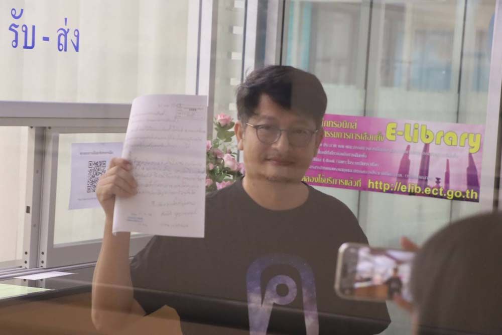 จากนั้นนายสมบัติได้เดินเข้าไปยื่นเอกสารกับ กกต.