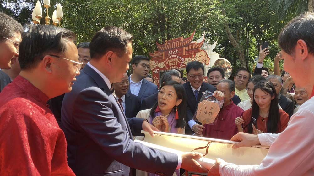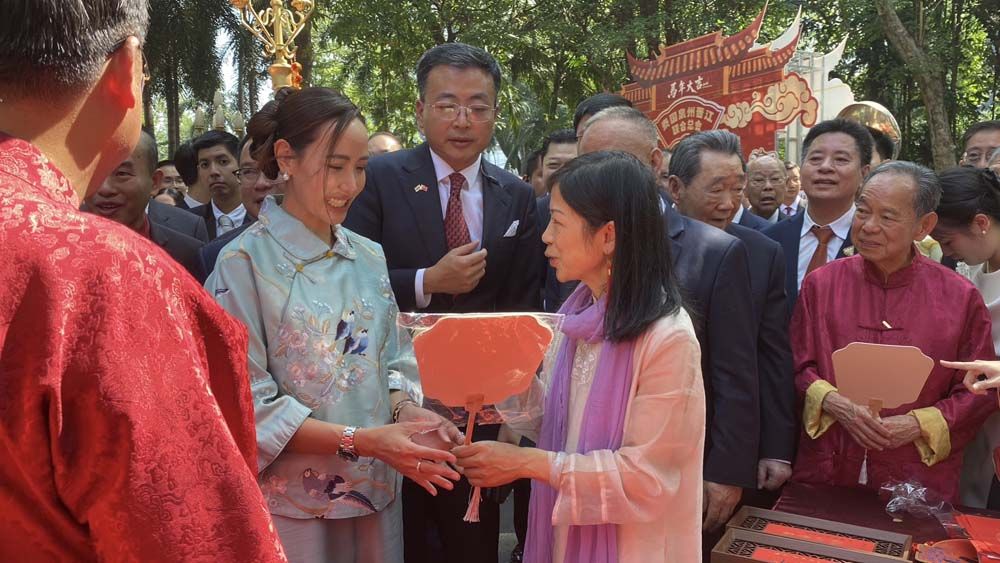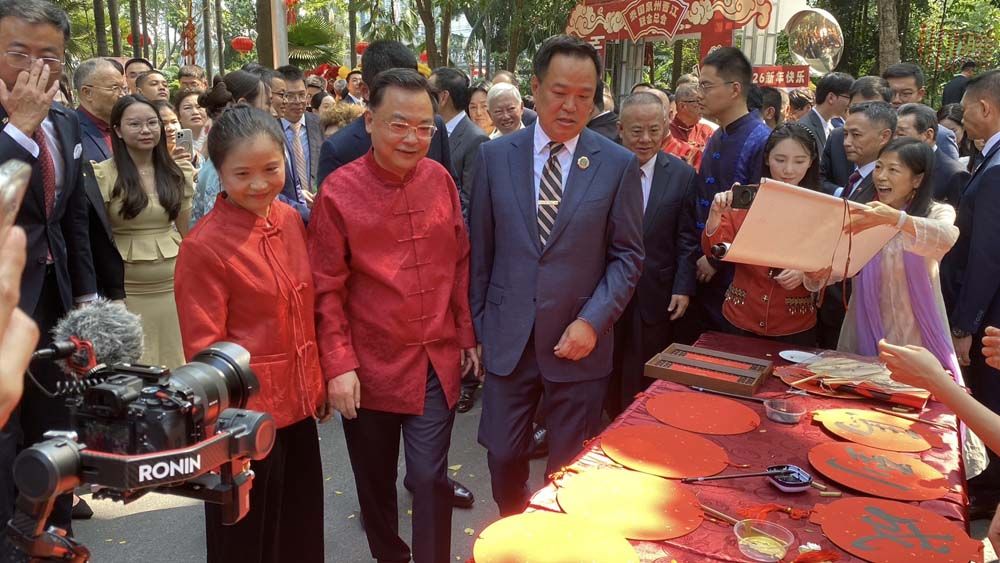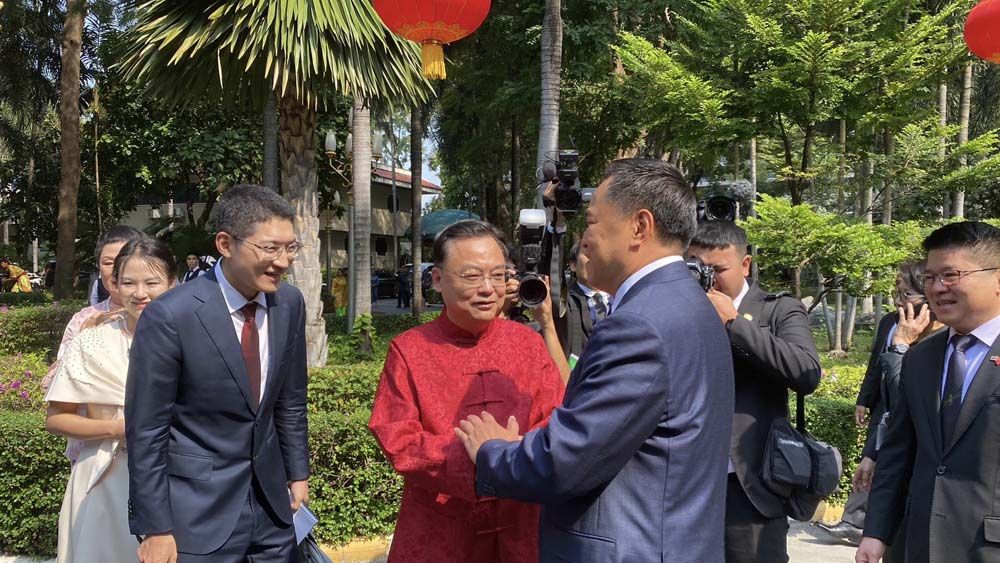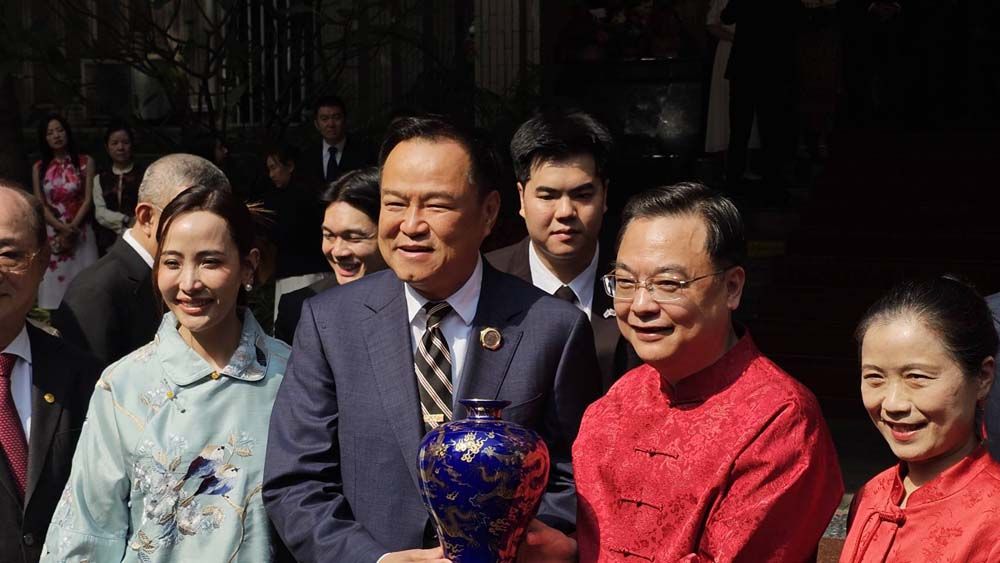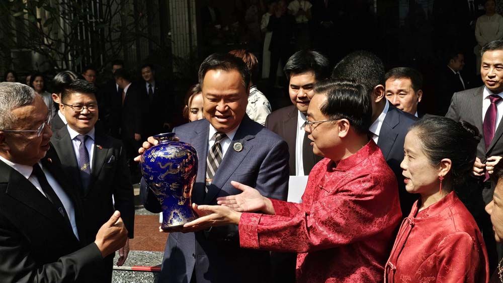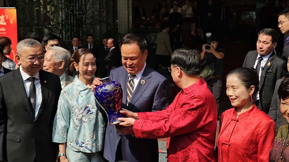ทั้งนี้ เมื่อเดินทางมาถึง นายกรัฐมนตรี ได้รับมอบแจกันสีน้ำเงินลายมังกรทองจากเอกอัครราชทูตจีนฯ และมอบช่อดอกไม้สีแดง เพื่อแสดงความยินดีให้แก่เอกอัครราชทูตจีนฯกลับ จากนั้นได้ถ่ายรูปหมู่ร่วมกัน พร้อมรับชมการแสดงชุดอิงเกอและการเชิดสิงโต