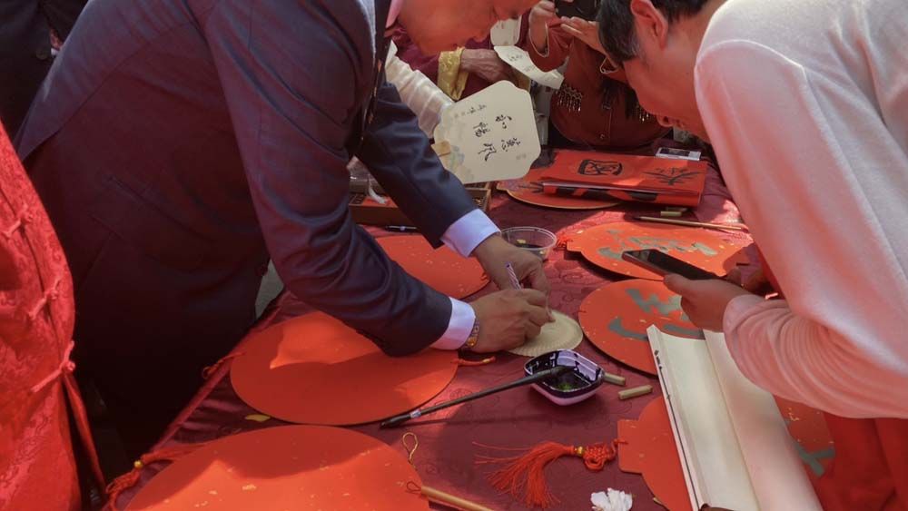 โอกาสนี้ นายกรัฐมนตรีได้แต้มตาสิงโต โดยใช้พู่กันแต้มที่ดวงตาของสิงโตที่ใช้เชิด ซึ่งเป็นสัญลักษณ์ของการเปิดดวงตาและเพิ่มพลังชีวิตตามความเชื่อของจีน จากนั้นได้นำซองอั่งเปาใส่ไว้ในปากสิงโต ขณะเดียวกัน นายกรัฐมนตรียังได้ทดลองนั่งโดรนโดยสารไร้คนขับ EHANG EH216-S ที่ขับเคลื่อนด้วยไฟฟ้า