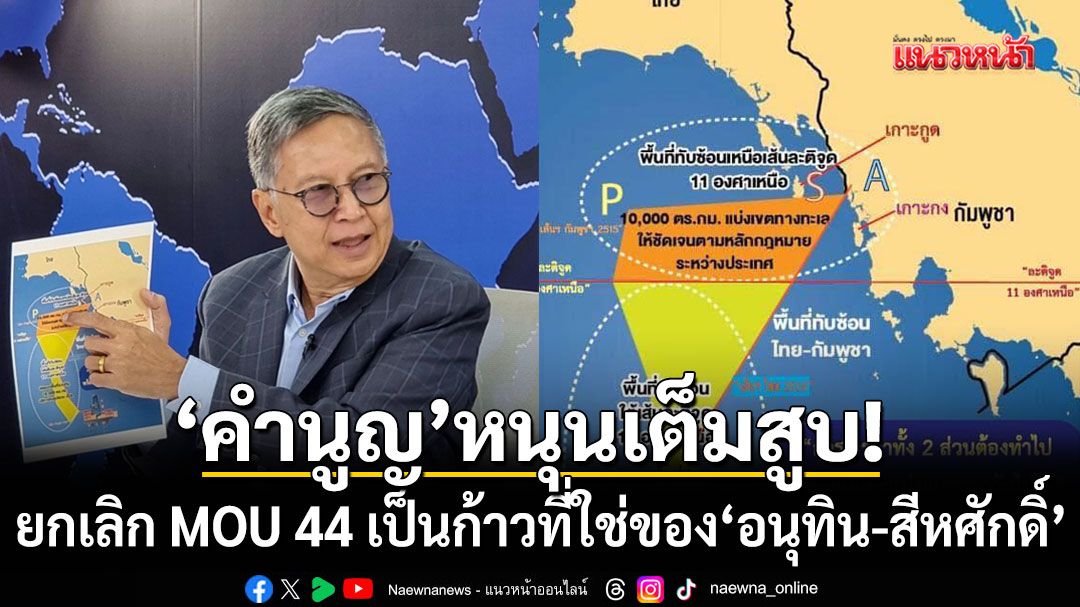 วันที่ 12 กุมภาพันธ์ 2569 นายคำนูณ สิทธิสมาน อดีตสมาชิกวุฒิสภา (สว.) โพสต์เฟซบุ๊ก ระบุว่า “ยกเลิก MOU 44 ก้าวที่ใช่ของอนุทิน-สีหศักดิ์”