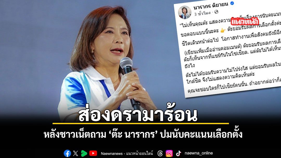 วันนี้ (12 กุมภาพันธ์ 2569) ชาวเน็ตบนโลกออนไลน์คนหนึ่งได้เข้าไปคอมเมนต์ถาม ต๊ะ นารากร ติยายน อดีตผู้ประกาศข่าวชื่อดัง เรื่องความเห็นต่อการนับคะแนนของ กกต. ที่กำลังถูกกังขาในขณะนี้ด้วยคำถามว่า "ไม่เห็นคุณต๊ะ แสดงความคิดเห็นเรื่องการนับคะแนน ของกกต. บ้างเลยครับ"