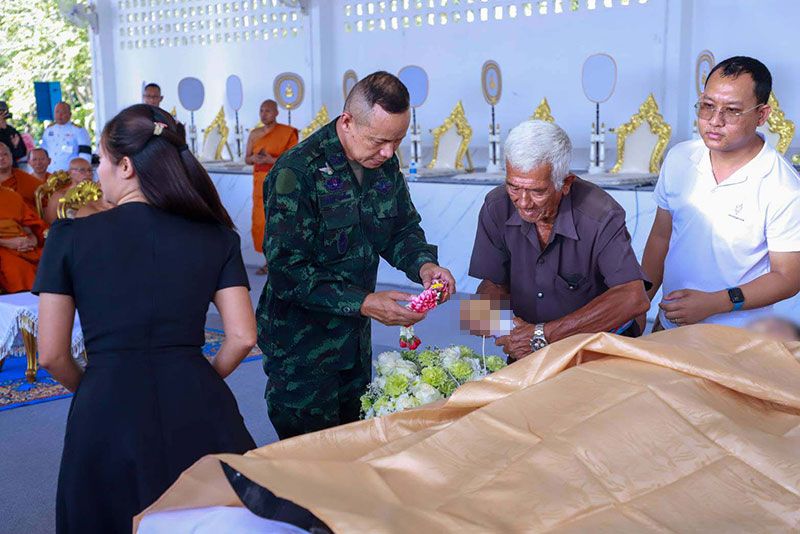 12 กุมภาพันธ์ 2569 พล.ท.นรธิป โพยนอก แม่ทัพภาคที่ 4 (มทภ.4) และผู้อำนวยการรักษาความมั่นคงภายในภาค 4 เดินทางเป็นประธานในพิธีรดน้ำศพ นางศศิพัชร สินสโมสร ผู้อำนวยการโรงเรียนพะตงประธานคีรีวัฒน์ ณ วัดยูงทอง ต.ท่าช้าง อ.บางกล่ำ จ.สงขลา ท่ามกลางบรรยากาศความโศกเศร้าของครอบครัว คณะครู ศิษย์เก่า และประชาชนที่มาร่วมไว้อาลัยเป็นจำนวนมาก