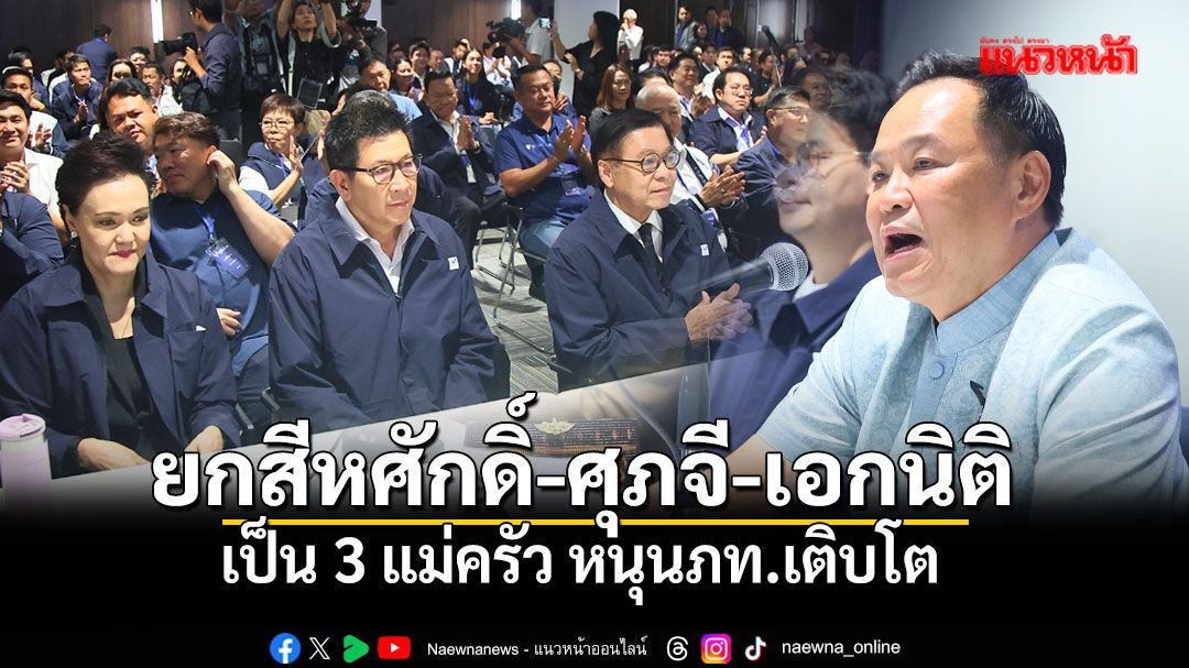 อนุทิน ยกสีหศักดิ์-ศุภจี-เอกนิติ เป็น 3 แม่ครัว หนุนภูมิใจไทยเติบโต กำชับ 193 ว่าที่สส.-แกนนำพรรค เร่งเครื่องทำงานหนัก เพื่อสร้างความมั่นใจให้คนไทย พัฒนาประเทศไปข้างหน้า ฟุ้งรอบนี้ซิวผู้แทนฯ ยกจังหวัดถึง20จว.