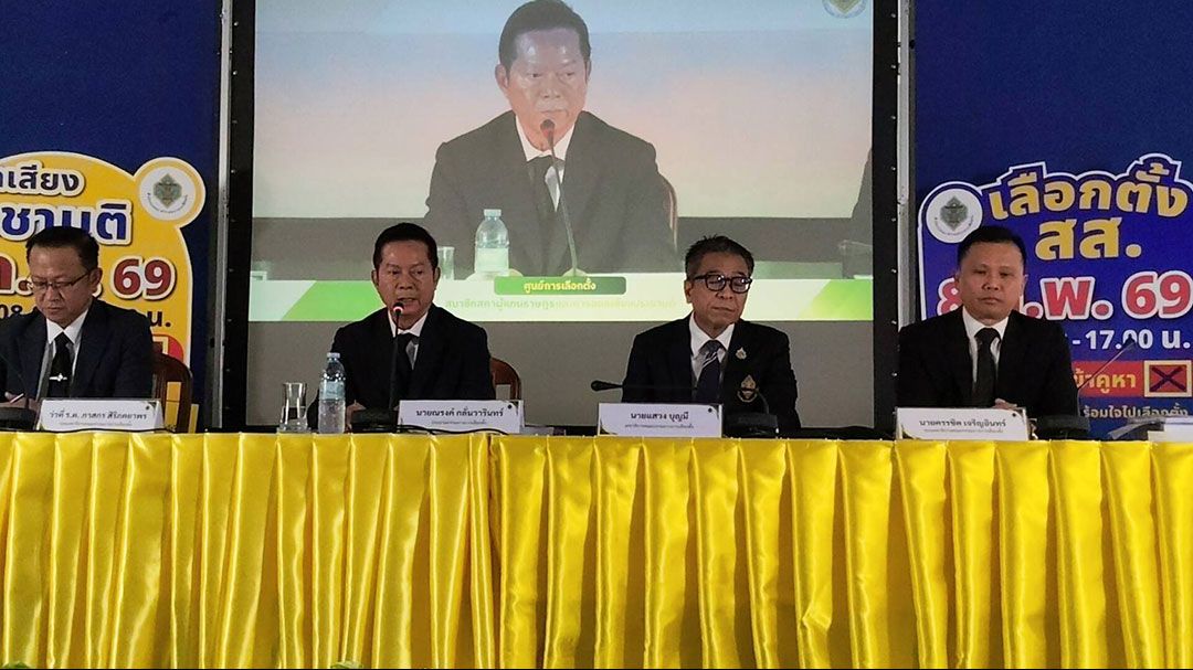 เมื่อเวลา 17.00 น. วันทื่ 12 ก.พ.2569 ที่ศูนย์การเลือกตั้งสส.และออกเสียงประชามติ สำนักงานคณะกรรมการการเลือกตั้ง(กกต.) นายณรงค์ กลั่นวารินทร์ ประธาน กกต. นายณรงค์ รักร้อย กกต. นายแสวง บุญมี เลขาธิการกกต. นายครรชิต เจริญอินทร์ รองเลขาธิการ กกต.และว่าที่ ร.ต.ภาสกร สิริภคยาพร รองเลขาธิการกกต. แถลงข่าว “การเลือกตั้ง สส. และการออกเสียงประชามติ”