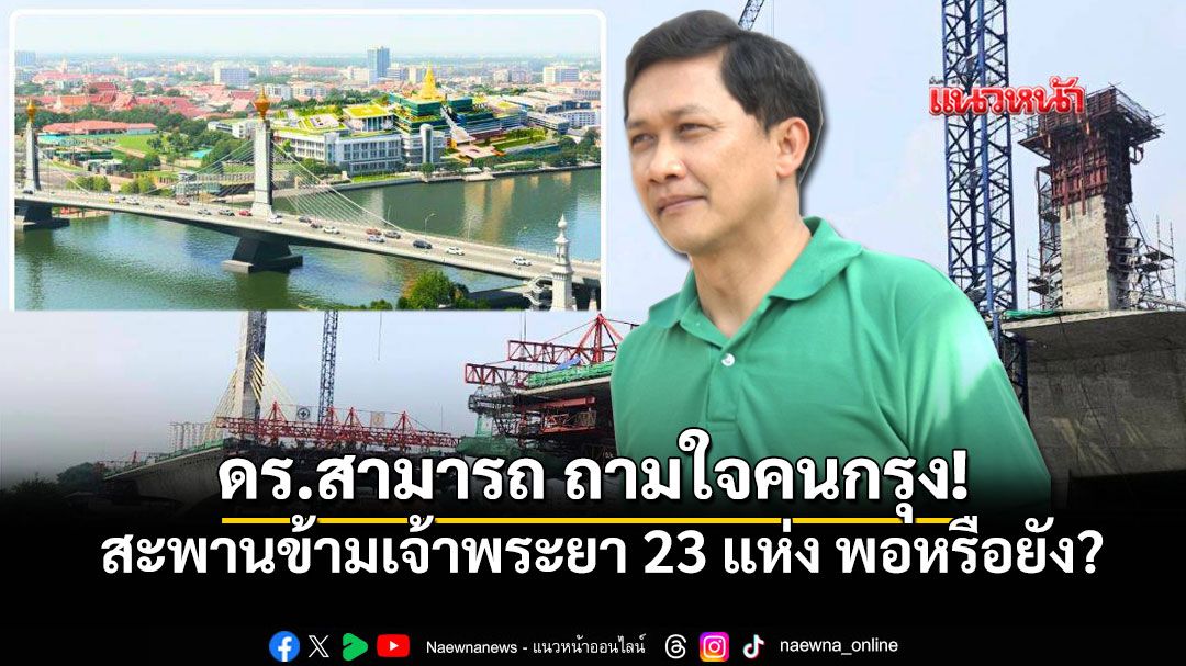 ดร.สามารถ ราชพลสิทธิ์ โพสต์ข้อความผ่านเฟซบุ๊ก สะพานข้ามเจ้าพระยาในกรุงเทพฯ มีพอหรือยัง? ทุกครั้งที่รถติดหน้าทางขึ้นสะพานข้ามแม่น้ำเจ้าพระยา คำตอบที่คนกรุงเทพฯ คุ้นเคยที่สุดคือ “ต้องสร้างสะพานเพิ่ม”