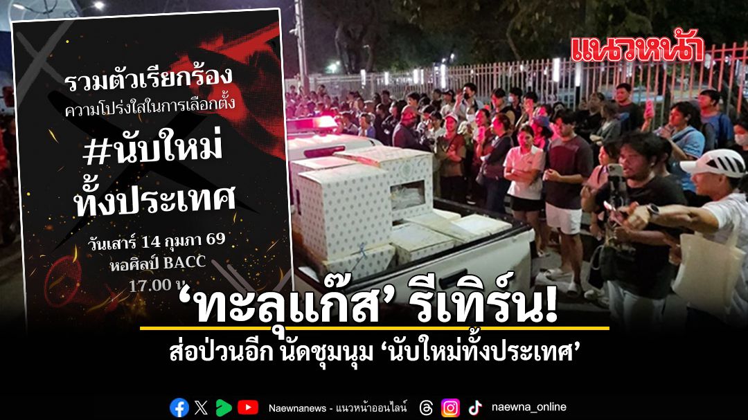 ล่าสุดเมื่อวานนี้ (12 ก.พ. 2569) เพจเฟซบุ๊ก ทะลุแก๊ซ - Thalugaz ได้โพสต์ข้อความนัดหมายเคลื่อนไหวครั้งใหญ่ โดยระบุว่า "[ช่วยประชาสัมพันธ์] 14 ก.พ. 69 วาเลนไทน์นี้ ร่วมกันเรียกร้องให้กกต.นับคะแนนใหม่ทั้งประเทศ เนื่องจากประชาชนได้เล็งเห็นแล้วว่าการเลือกตั้งครั้งนี้ไม่มีความโปร่งใสดั่งที่ควรจะเป็น จึงขอเรียกร้องให้เกิดการนับคะแนนใหม่ทั้งประเทศเพื่อความโปร่งใสและกู้วิกฤตศรัทธาในระบอบประชาธิปไตยให้กับประชาชนอีกครั้ง ณ ลานหน้าหอศิลป์ เวลา 17.00 น. เป็นต้นไป #นับใหม่ทั้งประเทศ"