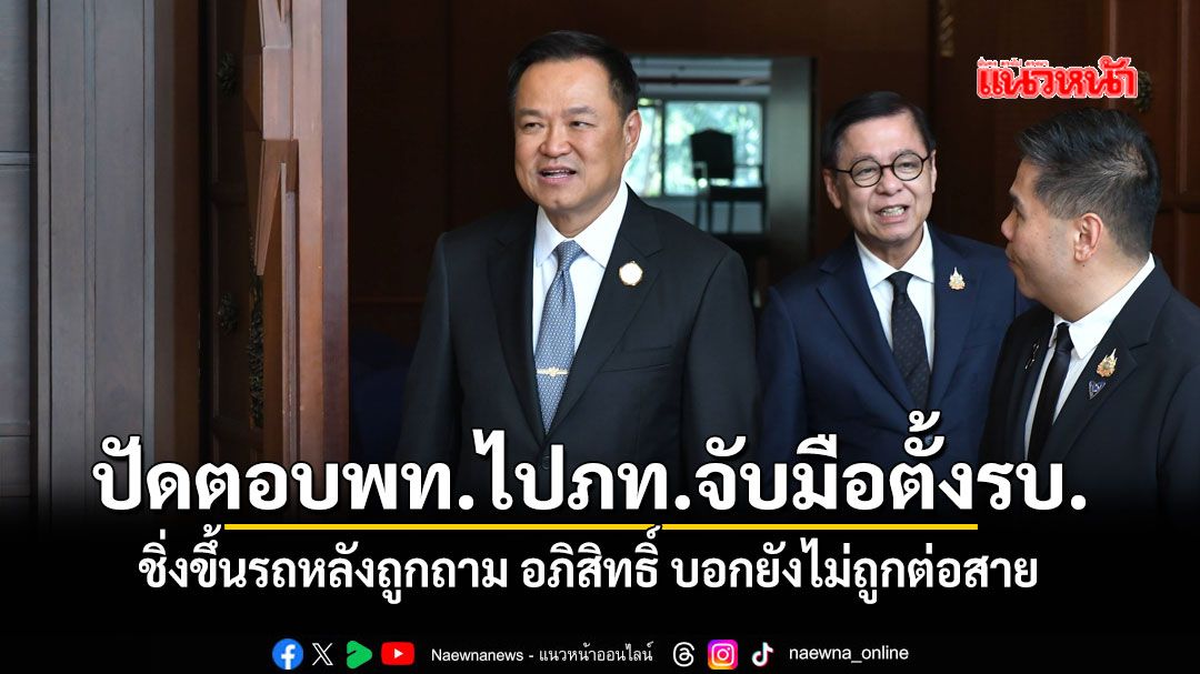 นายกฯ ปัดตอบเพื่อไทยเข้าพรรคภูมิใจไทย จับมือจัดตั้งรัฐบาล ชิ่งขึ้นรถหลังถูกถาม อภิสิทธิ์ บอกยังไม่ถูกต่อสาย
