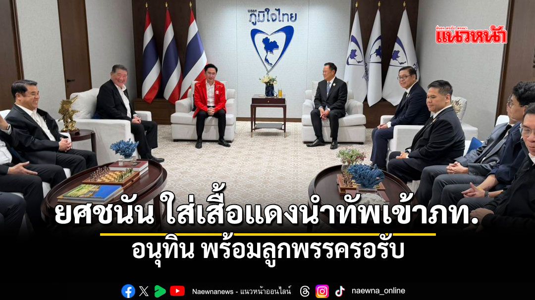 ยศชนัน สวมเสื้อสีแดงนำทัพ เพื่อไทย เข้าภูมิใจไทย ด้าน อนุทิน พร้อมลูกพรรครอรับ