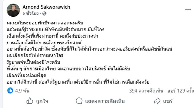 อยากได้ดีกว่านี้ ต้องได้รัฐบาลที่มาด้วยวิธีการอื่น ที่ไม่ใช่การเลือกตั้งครับ