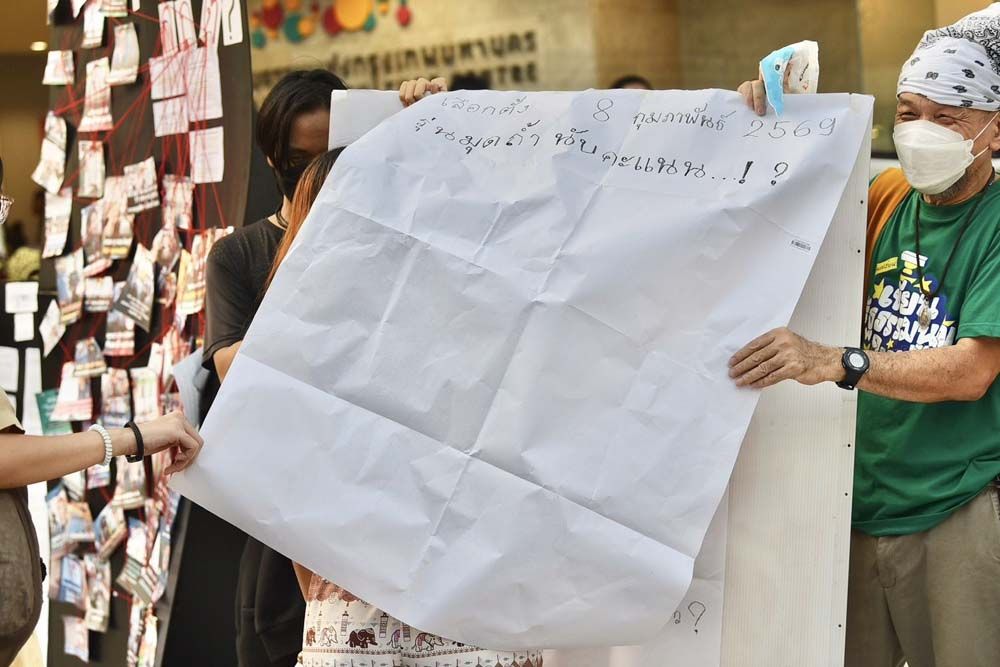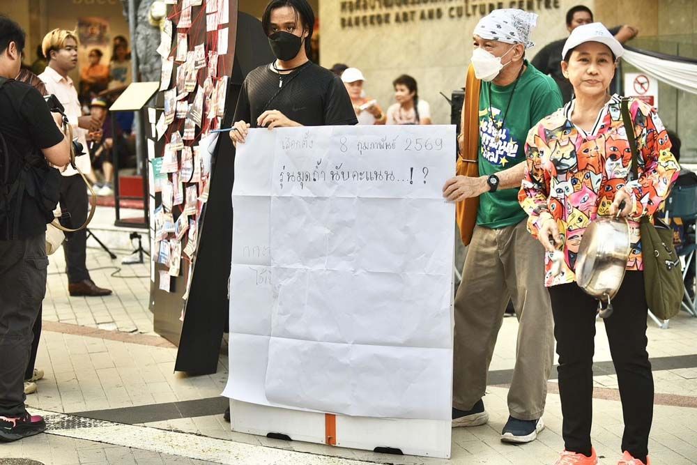 กลุ่มพลเมืองอิสระจัดกิจกรรมเชิงสัญลักษณ์ หน้าหอศิลปวัฒนธรรมแห่งกรุงเทพมหานคร เปิดพื้นที่ให้ประชาชนเขียนข้อความลงบนผ้าสีขาว สะท้อนข้อกังขาต่อการทำหน้าที่ของ กกต. พร้อมเรียกร้องความโปร่งใสในการเลือกตั้งที่ผ่านมา