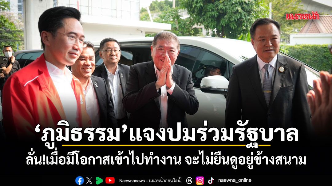 "ภูมิธรรม"แจงปมร่วมรัฐบาลภูมิใจไทย บอกฝ่ายค้านอาจพูดได้เต็มที่ แต่การเป็นรัฐบาลคือการลงมือทำจริง ลั่น!เมื่อมีโอกาสเข้าไปทำงาน จะไม่ยืนดูอยู่ข้างสนาม ชี้การเมืองไม่ใช่เรื่องศักดิ์ศรีของพรรค แต่คือความรับผิดชอบต่อประเทศ