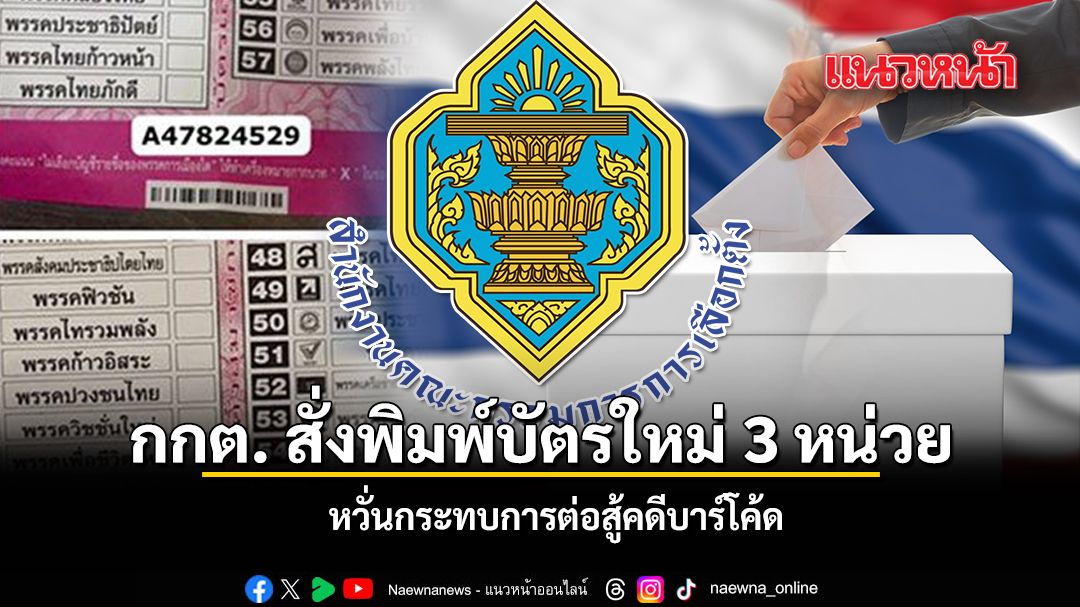 วันนี้ 17 กุมภาพันธ์ 2569 รายงานข่าวจากสำนัก งานคณะกรรมการการเลือกตั้ง (กกต.) ว่าที่ประชุมมีการพิจารณาต่อเนื่องจากวานนี้เกี่ยวกับการจัดการจัดพิมพ์บัตรออกเสียงลงคะแนนใหม่ ที่จะต้องใช้ในวันที่ 22 ก.พ. 69 ตามที่ กกต.มีมติก่อนหน้านี้ว่าให้มีการออกเสียงลงคะแนนใหม่ใน 3 หน่วย คือ 1.หน่วยเลือกตั้งที่ 9 เขตเลือกตั้งที่ 15 คันนายาว กรุงเทพ 2.หน่วยเลือกตั้งที่ 3.เขตเลือกตั้งที่ 1 ต.ไชยสถาน อ.เมืองน่าน จ.น่าน และ 3. หน่วยเลือกตั้งที่ 4 เขตเลือกตั้งที่ 6 ต.โพนสูง. อ.ไชยวาน จ.อุดรธานี โดยที่ประชุมยังคงหารือไม่เป็นที่ยุติว่าบัตรที่จะจัดพิมพ์ใหม่นั้นจะยังคงใช้รูปแบบบัตรโดยกำหนดเลขเล่มที่ และเลขที่ของบัตร รวมทั้ง สัญลักษณ์บาร์โค้ดเหมือนที่ใช้ในการเลือกตั้งเมื่อวันที่ 8 ก.พ. หรือไม่ หากไม่มีจะเกิดข้อถกเถียงเถียงทางกฎหมายถึงความแตกต่างของบัตรที่ใช้ในการเลือกตั้งทั่วไป กับที่ใช้ในการออกเสียงลงคะแนนใหม่หรือไม่ และจะยิ่งไม่เป็นผลดีกับการที่ กกต.จะต้องสู้คดีที่ถูกฟ้องว่าการพิมพ์บาร์โค้ดบนบัตรเลือกตั้งเป็นการกระทำขัดรัฐธรรมนูญ ยังมีรายงานว่าในการประชุม กกต.วานนี้ (16 ก.พ.) ยังได้มีการเรียกตัวผู้อำนวยการการเลือกตั้งประจำจังหวัดสมุทรปราการมาให้ข้อมูลเพิ่มเติม กรณีเกิดพบแบบขีดคะแนน