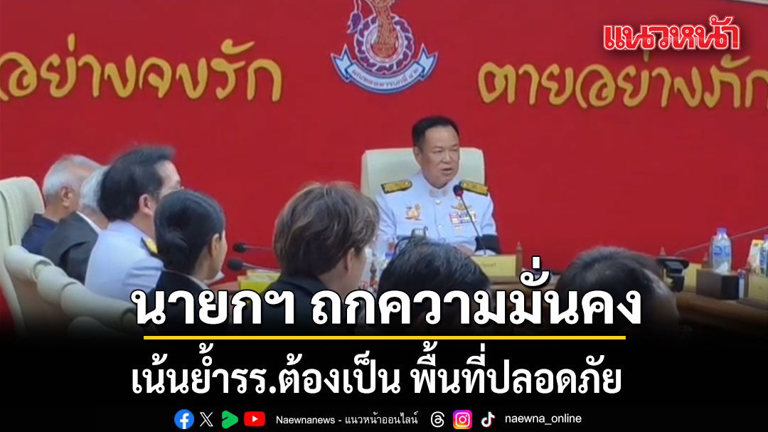นายกฯ ถกความมั่นคง เน้นย้ำรร.ต้องเป็น "พื้นที่ปลอดภัย" สั่งมหาดไทย ก.ศึกษาฯ และตำรวจ บูรณาการจัดทำแผนความปลอดภัยทั่วประเทศ ยันนโยบายตั้งแต่ปี 66 มหาดไทยไม่ต่อใบอนุญาตพกพาปืน ลั่นปี 69 นี้ ใครพก ไม่ใช่ จนท.รัฐ ถือว่าเป็น "ปืนเถื่อน" ผิดกฎหมายทันที พร้อมกำขับการข่าวต้องมีเอกภาพ