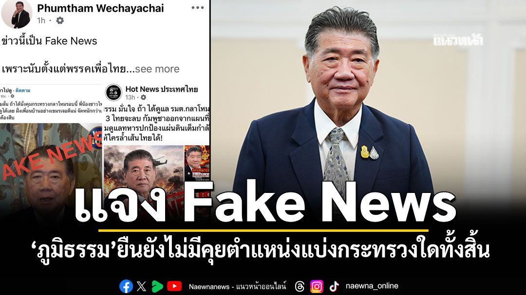 18 กุมภาพันธ์ 2569 นายภูมิธรรม เวชยชัย แกนนำพรรคเพื่อไทย โพสต์ชี้แจงกรณี Fake News “ถ้าคุมกลาโหม..” ระบุข้อความว่า