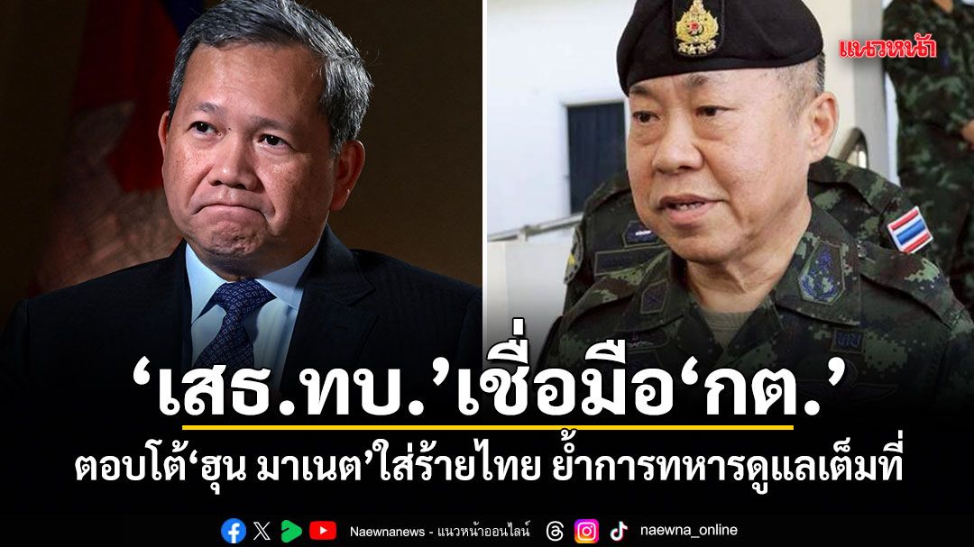 "เสธ.ทบ."เชื่อมือ"กต." ตอบโต้"ฮุน มาเนต"ใส่ร้ายไทย ย้ำการทหารดูแลเต็มที่ ซัด"ทหารกัมพูชา"ไร้วินัย ถูกส่งเข้าพื้นที่โดยไม่ได้เตรียมตัว