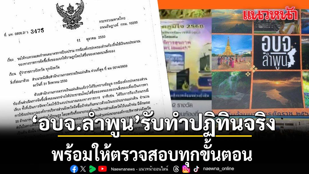 วันที่ 19 กุมภาพันธ์ 2569 เพจเฟซบุ๊ก อบจ.ลำพูน โพสต์ชี้เเจง ตามที่มีเพจต่าง ๆ บนสื่อสังคมออนไลน์กล่าวถึงกรณีการจัดทำปฏิทินประชาสัมพันธ์ของ องค์การบริหารส่วนจังหวัดลำพูน